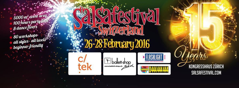 Im Februar 2016 feiert das Salsafestival Switzerland sein 15. Jubiläum! The Salsafestival Switzerland is one of the leading Salsa Congresses in the world. For the 15th time the Salsafestival Switzerland presents a world-class concert, the friendliest stars, top shows, the best workshops, extraordinary salsa parties on 5+3 dance floors and long, long after parties.... 2015 was incredible - 2016 will blow your mind. LINE-UP ARTISTS Adolfo Indacochea, Milano Tania Cannarsa & the Latin Soul Dancers, Milano Tropical Gem, Milano Framboyan Dance Company, New York Grupo Alafia, Parma Leon Rose Project, Paris Terry & Cécile, Paris Sabor Dinamico, Alicante Supermario, London Aliance on the Dancefloor, FR/CH Tamambo, Berlin Manuel Mascarell & Christina, Spain Alberto Valdes & Andria Panagi, Milano Osbanis & Anneta, Cuba, London Alba Estilos Unidos, Alicante Afro Latin Connection, Porto Paula & Ricardo, Porto Yami &Djenny, Paris Marlon Int’L , New York Aroa Jimenez Gonzalez , Lyon Fuego y Pasion, Zürich 41 Dance Company, Gineva, Lausanne Aimane & Brigitte, Gineva Baila Rico, Zürich Bailamos Salsa, Basel Salsa Olé, Wohlen Sonja & Keith, Zürich Salsa y Dulzura, Lausanne New Style Dance, Lugano Jenny Vaccaro- Leone, Zürich Issa & Oana, Fribourg Gozando Salsa, Zürich DJ’S Cisko Man, Brussel Gabriel, Paris El Samurai, Cuba, Roma Rumbero, Peru/ Germany Sezar Duran, Norway Claude Raoul, Berlin Marco Rookie, Lissabon Luca P, Biel Virus, Zürich Fonseca, Gineva U.S.’Thaler, Zürich Montuno, Zürich SDS Fantasia Entertainement Photography by Valentin Behringer and many more to be confirmed. http://salsafestival.com/?promo=salsa.ch