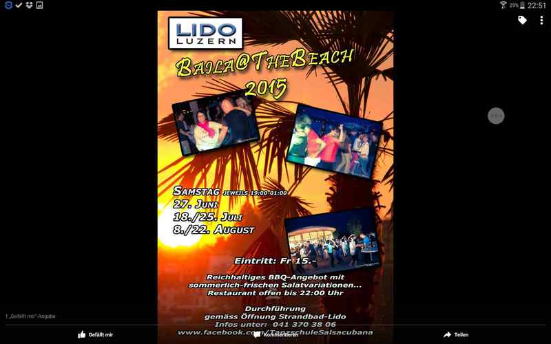 DIE Openair Salsa Party schlechthin, im Strandbad Lido in Luzern. Die wunderschöne Aussicht auf den Pilatus und die nächtliche Skyline von Luzern und dazu zu bestem Salsa, Kizomba, Bachata in die Nacht hinein tanzen.....