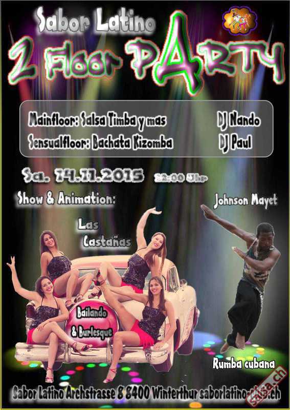 Unsere 2 Floorparty wird immer beliebter. Sie bietet auf 2 Dancefloors Tanzspass pur. Mainfloor: Salsa, Timba, Merengue, Party und nach 01:00 Uhr auch Reggaeton Sensualfloor: Bachata und Kizomba Heute präsentieren wir eine tolle Ladystyle und Burlesqueshow mit "Las Castañas" und Johnson Mayet aus Kuba wird die Bude zum kochen bringen mit Rumba Cubana und Animation. DJ: Nando DJ: Paul www.saborlatino-club.ch Lageplan: Nur 3 Gehminuten vom HB Winterthur, Parkplätze gibt es an der unteren Vogelsangstrasse und in den Parkhäusern im Migros Neuwiesen, über dem Hauptbahnhof oder Parkhaus Eulachpassage. Hier der Link und die Preise: http://ch.parkopedia.com/parken/archstrasse_8_winterthur_schweiz/?ac=1&country=CH&lat=47.49809&lng=8.723568200000045 . Das Sabor Latino liegt in maximal 5 Minuten von diesen Parkhäusern.
