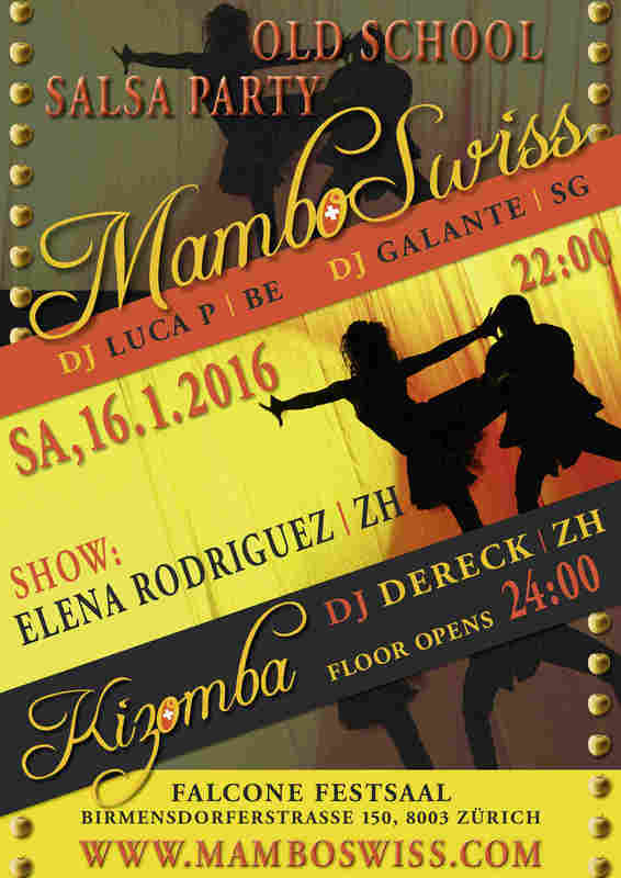 Die MamboSwiss lädt zur ersten Party des Jahres ein. Der Winter ist angebrochen, auf der Tanzfläche bleibt es heiss. Dafür sorgen im Salsafloor Dj Luca P (BE), Dj Galante (SG) und auf dem Kizombafloor Dj Dereck (ZH). Ausserdem wird Elena Rodriguez (ZH) mit ihrer Show die Tanzfläche in Feuer und Flammen verwandeln. Die MamboSwiss wird Eure Spenden an folgendes Projekt überweisen: Häuser für Erdbebenopfer in Nepal: für ein warmes, sicheres Zuhause von Familien (https://www.helvetas.ch/de/spenden/direkt_spenden/aktuelle_spendenaktion/) Vielen Dank für deine Unterstützung und wir freuen uns, dich auf der Tanzfläche zu begrüssen. Dein MamboSwiss-Team -- MamboSwiss would like to invite you to the first party of the year. Winter has come, but the dance floor stays hot! To make sure of that, we welcome DJ Luca P (BE) and DJ Galante (SG) on the salsa floor, and DJ Dereck (ZH) on the kizomba floor. What’s more, the show by Elena Rodriguez (ZH) will set the dance floor on fire. MamboSwiss will transfer your donations to the following charity: Houses for earthquake victims in Nepal: Warm and secure homes for families. (https://www.helvetas.ch/de/spenden/direkt_spenden/aktuelle_spendenaktion/) Many thanks for your support, and we’re looking forward to welcoming you on the dance floor! Your MamboSwiss Team -- All evnets / Alle Events: - Jan. 16th: https://www.facebook.com/events/492523080911645/ - Feb. 20th: https://www.facebook.com/events/1637453203207656/ - Mar. 19th: https://www.facebook.com/events/710623982394282/ - Apr. 16th: https://www.facebook.com/events/1679155238982609/ - May 21st: https://www.facebook.com/events/126609821009432/ - Aug. 20th: https://www.facebook.com/events/510586099108824/ - Sep. 17th: https://www.facebook.com/events/867992956651231/ - Oct. 14th + 15th: https://www.facebook.com/events/701137433323647/ - Dec. 17th: https://www.facebook.com/events/730193197112331/ -- Das Jahr 2016 heisst für uns alle ein Jahr der Solidarität. Mit MamboSwiss Charity wollen wir ein ganzes Jahr notdürftigen Menschen helfen. Dabei arbeiten alle zusammen; - Organisator - Teammitglieder - Djs - Artisten - Falcone-Team und natürlich Ihr, unsere Gäste. Ihr seid die direkten Unterstützer dieser Projekte. Mit eurem Eintritt und Euren Spenden ist es möglich, die Fixkosten für die einzelne Party zu decken und das übrige Geld an gemeinnützige Organisationen zu spenden. Ich bin unendlich dankbar für Euer Vertrauen und möchte mich an dieser Stelle herzlich bei meinem Team bedanken, welches in den letzten drei Jahren seine Arbeit immer gratis geleistet hat und dies auch im 2016 tun wird. Mein Dank geht weiter an die Djs, Artisten und ans Falcone-Team, welche grösstenteils auf ihrer Gagen verzichten, damit eine möglichst grosse Spendensumme entstehen kann. Zusammen sind wir stark! Euer Ramy -- The year 2016 will be a year of solidarity for all of us. For an entire year, we want to help people in need with MamboSwiss Charity. To make this happen, everybody will be working together: - organizer - team members - DJs - artists - Falcone team and of course you, our guests. You give your direct support to these projects. With the entrance fees and your donations it is possible to cover the fixed costs of the party and donate the remaining money to charitable organisations. I am eternally grateful for your trust and I would like to take this opportunity to express my warmest thanks to my team, who have been working for free in the last three years and will continue to do so in 2016. I would also like to thank the DJs, artists and the Falcone team, who have largely agreed to waive their pay in order to help achieve as big a donation as possible. Together we are strong! Yours, Ramy
