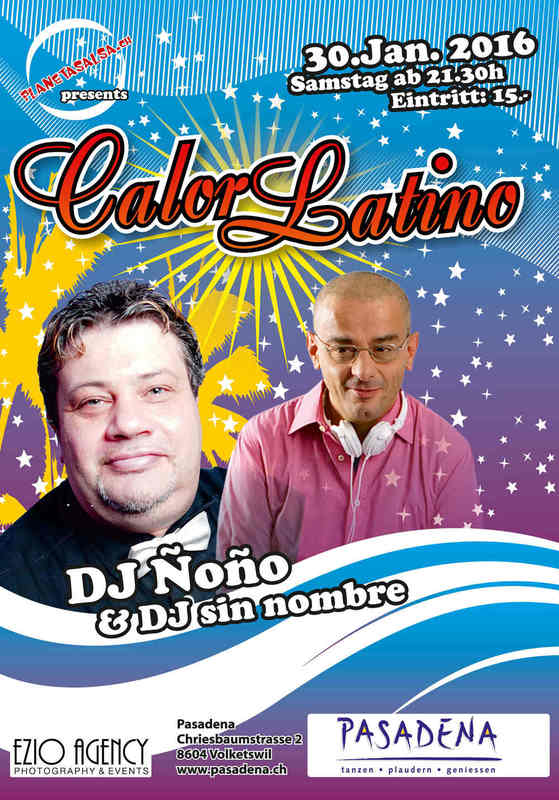 Calor Latino startet ins 2016 mit vielen neuen Überraschungen! Am 30. Januar 2016 geht’s ganz gross weiter mit DJ Ñoño & DJ sin nombre Live Act ca. 24:00h Lady Style Show von Salsa People An alle Gäste, Bitte vergisst nicht, wir haben im Pasadena ein grosses Gratis Parkhaus! Nutzt diese nicht selbstverständliche Dienstleistung!