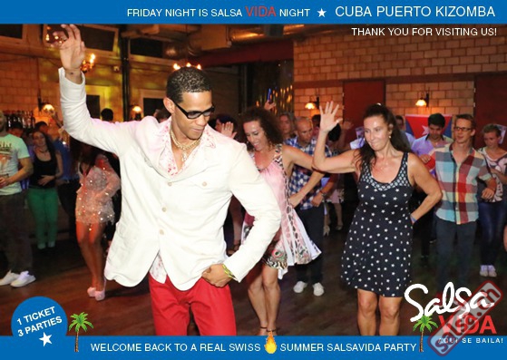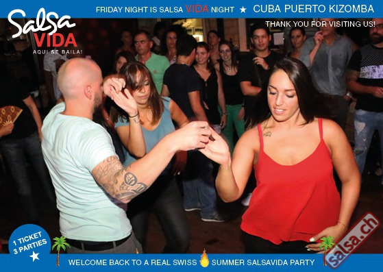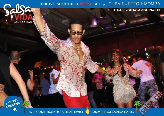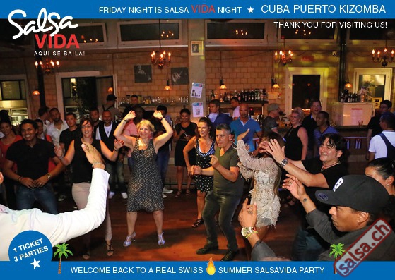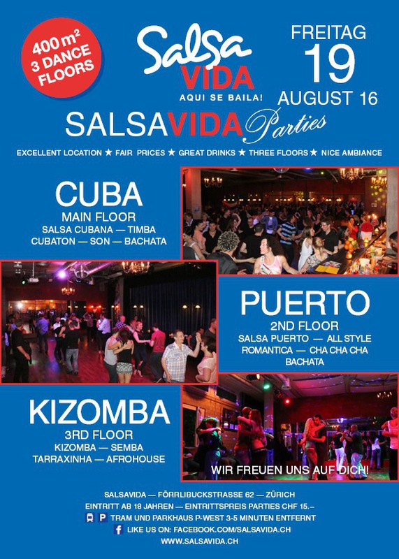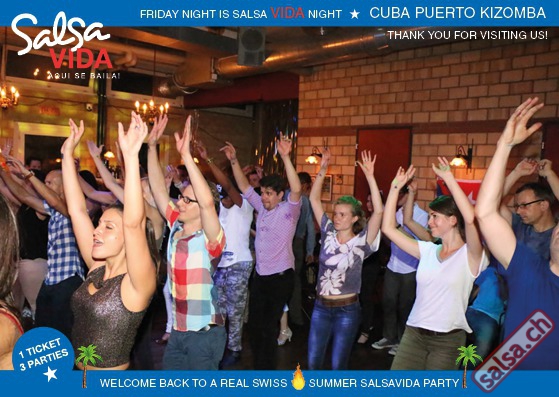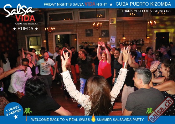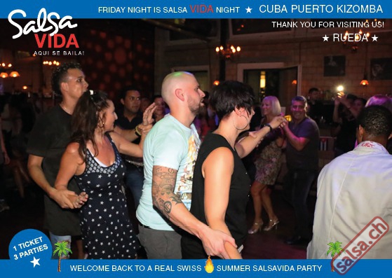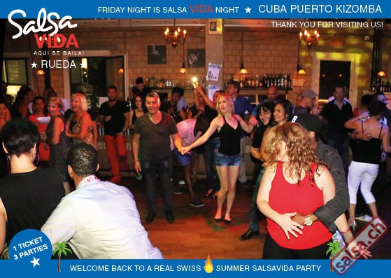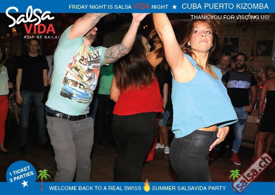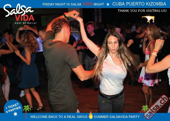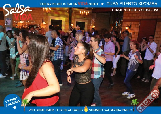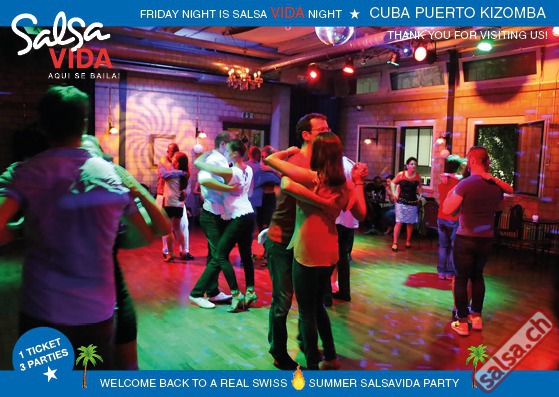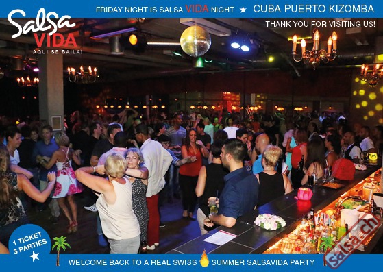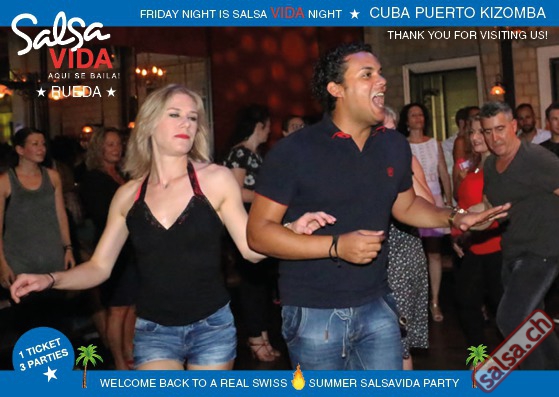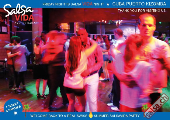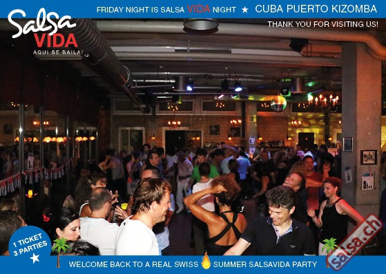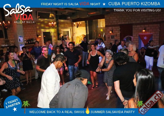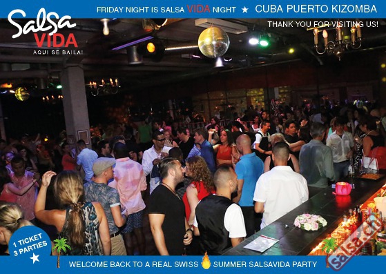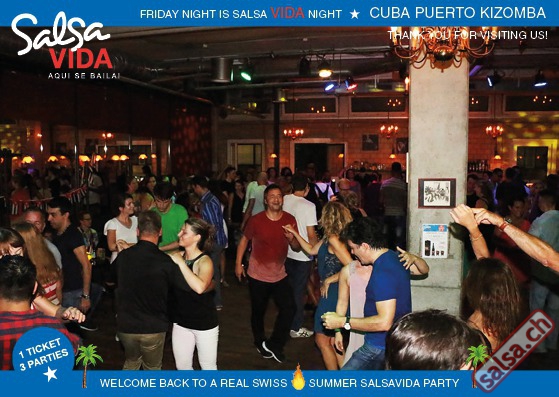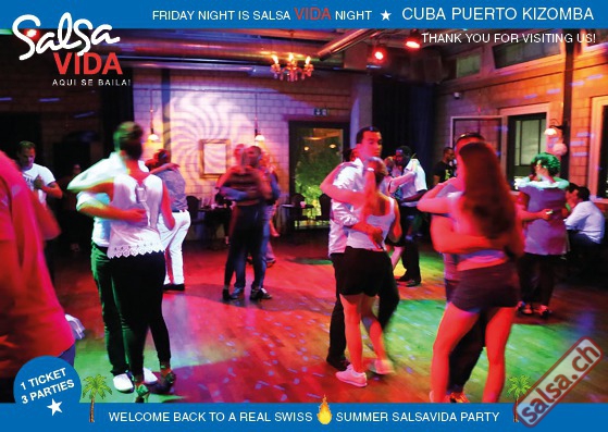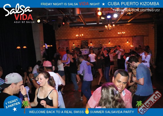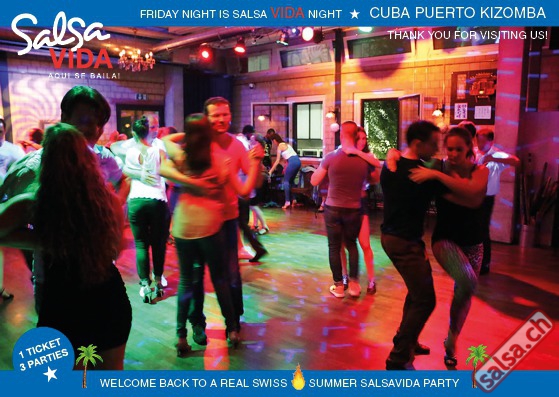 ★★★Friday Night is SALSAVIDA Night★★★ 1 Ticket = 3 Parties!!! ★★★★ VIDA PARTIES★★★★ ★ CUBA ★ PUERTO ★ KIZOMBA ★ ▶ 19 AUGUST 2016 ab 21:00 H / SALSAVIDA / ZÜRICH◀ Main Floor CUBA VIDA DOUBLE PACK ab 21:00 H ● MUSIC BY DJ MONTUNO | DJ EMIGRANTE ★Salsa Cubana ★Timba ★Son ★Cubaton ★Bachata ● ENTERTAINMENT BY MIJAIL GALANO (Cuba) 2nd Floor PUERTO VIDA ab 22:00 H ● MUSIC BY DJ PEPE ★SALSA PUERTO ★ALL STYLE ★ROMANTICA ★Cha cha cha ★BACHATA 3rd Floor KIZOMBA VIDA ab 22:00 H ● MUSIC BY DJ DERECK Resident DJ ★Kizomba ★Tarraxinha ★Semba ★Afrohouse ● 400m2 PISTA ● 3 DANCE FLOORS ● 3 TOP DJ’S ● 2 BARS ● EXCELLENT LOCATION ● NICE AMBIENCE ● FAIR PRICES ● GREAT DRINKS ● DANCE ● ENTERTAINMENT ● SHOWS ● RUEDA ● FUN ● FIESTAAA! VERLOSUNG: 2 Tickets für Fiesta Latina Candela Tropical Style DON’T MISS IT!!! Eine unvergessliche Tanznacht, Spass, Freude und Unterhaltung ist dabei garantiert! Eintritt CHF 15.- Event on Facebook: https://www.facebook.com/events/659811964176199/ Wir freuen uns auf DICH! SALSAVIDA aqui se bailaaa! Saludos Francesco & Salsavida Team Anfahrtsplan Salsavida Förrlibuckstrasse 62 in 8005 Zürich. Achtung: Für Salsavida Gäste, die mit dem Auto anreisen, bitte unbedingt das "Parkaus West" oder "Parkhaus Toni Areal" benutzen, da auf dem Salsavida und Club Silbando-Areal nicht überall geparkt werden darf. Tram Mit dem Tram findest du folgt zu uns: - Nr. 17 bis Förrlibuckstrasse - Nr. 4, 10, 11, 13, 15, 17 bis Escher-Wyss-Platz - Nr. 4 bis Technopark Bus Folgende Busse führen ebenfalls an die Förrlibuckstrasse: - Nr. 32, 33, 34, 46, 72 bis Escher-Wyss-Platz S-Bahn - Nr. 5, 6, 7, 9, 12 bis Bahnhof Hardbrücke Parkmöglichkeiten - Parkhaus Zürich-West an der Förrlibuckstrasse 151 - Parkhaus Toni Areal an der Pfingstweidstrasse 94 - West-Park an der Giessereistrasse - unter der Hardbrücke etc. Wieviele Gehminuten dauert es zum SALSAVIDA? - Escher-Wyss-Platz Salsavida 6 Minuten - Technopark Salsavida 6 Minuten - Parkhaus Toni Areal Salsavida 3 Minuten - Parkhaus Zürich-West Salsavida 4 Minuten - Bahnhof Hardbrücke Salsavida 12 Minuten
