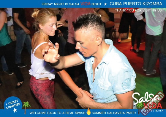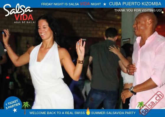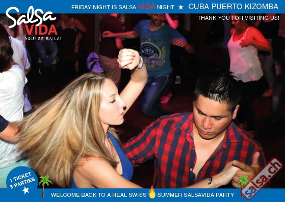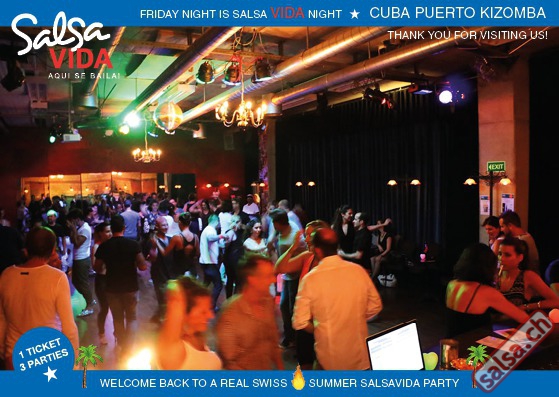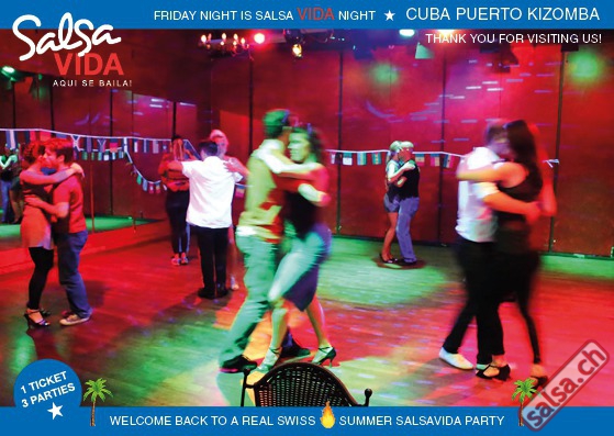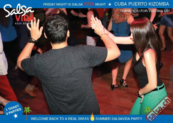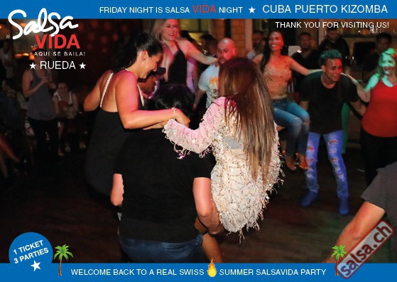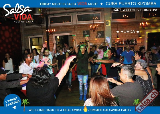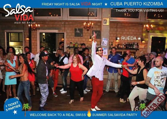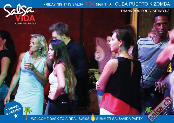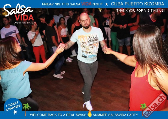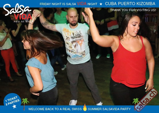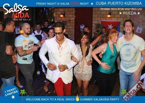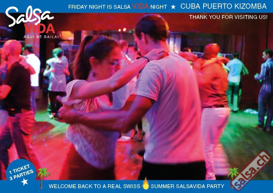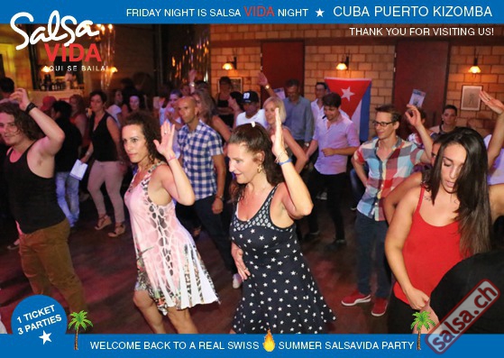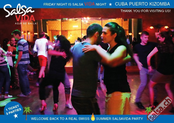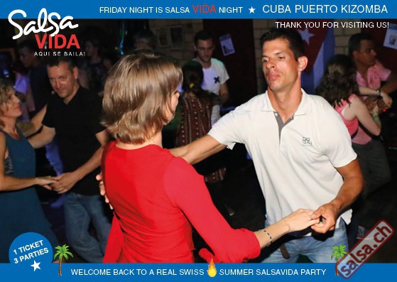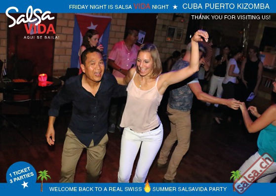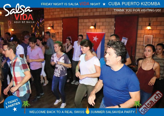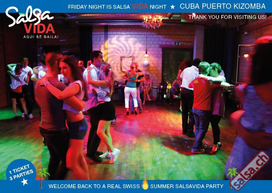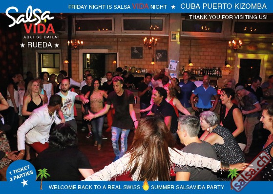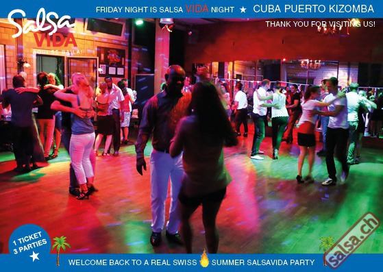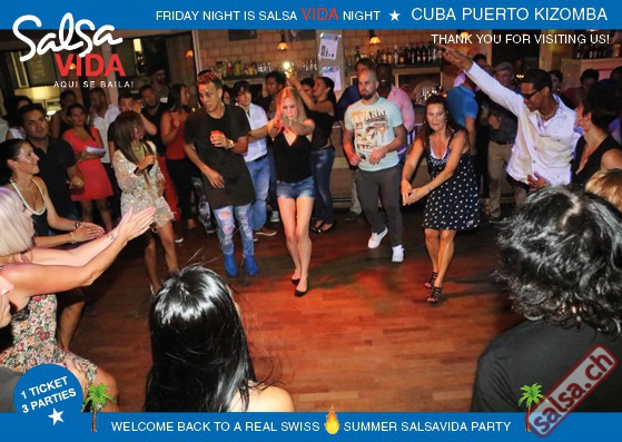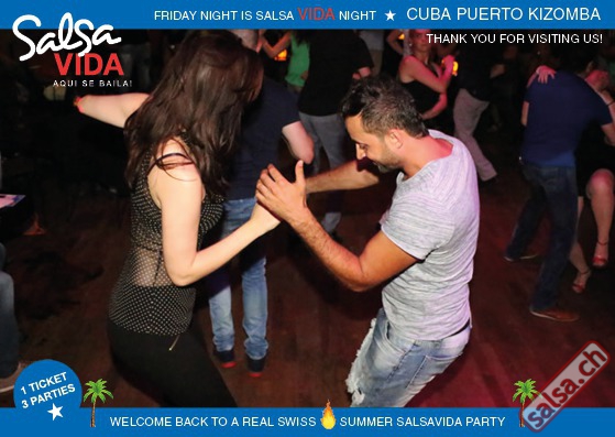★★★Friday Night is SALSAVIDA Night★★★ 1 Ticket = 3 Parties!!! ★★★★ VIDA PARTIES★★★★ ★ CUBA ★ PUERTO ★ KIZOMBA ★ ▶ 19 AUGUST 2016 ab 21:00 H / SALSAVIDA / ZÜRICH◀ Main Floor CUBA VIDA DOUBLE PACK ab 21:00 H ● MUSIC BY DJ MONTUNO | DJ EMIGRANTE ★Salsa Cubana ★Timba ★Son ★Cubaton ★Bachata ● ENTERTAINMENT BY MIJAIL GALANO (Cuba) 2nd Floor PUERTO VIDA ab 22:00 H ● MUSIC BY DJ PEPE ★SALSA PUERTO ★ALL STYLE ★ROMANTICA ★Cha cha cha ★BACHATA 3rd Floor KIZOMBA VIDA ab 22:00 H ● MUSIC BY DJ DERECK Resident DJ ★Kizomba ★Tarraxinha ★Semba ★Afrohouse ● 400m2 PISTA ● 3 DANCE FLOORS ● 3 TOP DJ’S ● 2 BARS ● EXCELLENT LOCATION ● NICE AMBIENCE ● FAIR PRICES ● GREAT DRINKS ● DANCE ● ENTERTAINMENT ● SHOWS ● RUEDA ● FUN ● FIESTAAA! VERLOSUNG: 2 Tickets für Fiesta Latina Candela Tropical Style DON’T MISS IT!!! Eine unvergessliche Tanznacht, Spass, Freude und Unterhaltung ist dabei garantiert! Eintritt CHF 15.- Event on Facebook: https://www.facebook.com/events/659811964176199/ Wir freuen uns auf DICH! SALSAVIDA aqui se bailaaa! Saludos Francesco & Salsavida Team Anfahrtsplan Salsavida Förrlibuckstrasse 62 in 8005 Zürich. Achtung: Für Salsavida Gäste, die mit dem Auto anreisen, bitte unbedingt das "Parkaus West" oder "Parkhaus Toni Areal" benutzen, da auf dem Salsavida und Club Silbando-Areal nicht überall geparkt werden darf. Tram Mit dem Tram findest du folgt zu uns: - Nr. 17 bis Förrlibuckstrasse - Nr. 4, 10, 11, 13, 15, 17 bis Escher-Wyss-Platz - Nr. 4 bis Technopark Bus Folgende Busse führen ebenfalls an die Förrlibuckstrasse: - Nr. 32, 33, 34, 46, 72 bis Escher-Wyss-Platz S-Bahn - Nr. 5, 6, 7, 9, 12 bis Bahnhof Hardbrücke Parkmöglichkeiten - Parkhaus Zürich-West an der Förrlibuckstrasse 151 - Parkhaus Toni Areal an der Pfingstweidstrasse 94 - West-Park an der Giessereistrasse - unter der Hardbrücke etc. Wieviele Gehminuten dauert es zum SALSAVIDA? - Escher-Wyss-Platz Salsavida 6 Minuten - Technopark Salsavida 6 Minuten - Parkhaus Toni Areal Salsavida 3 Minuten - Parkhaus Zürich-West Salsavida 4 Minuten - Bahnhof Hardbrücke Salsavida 12 Minuten