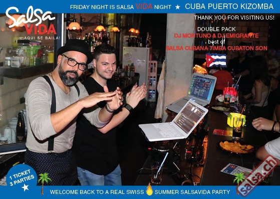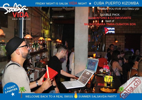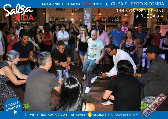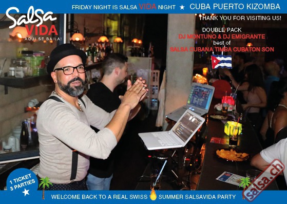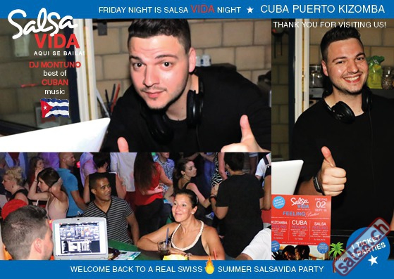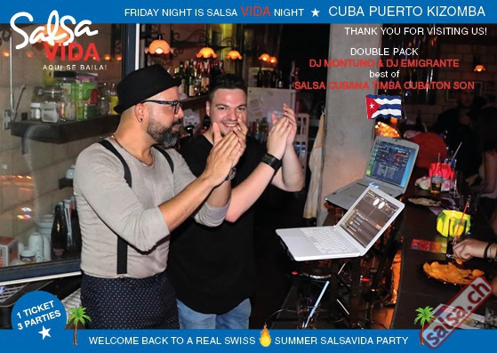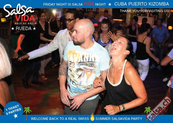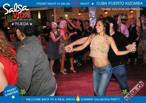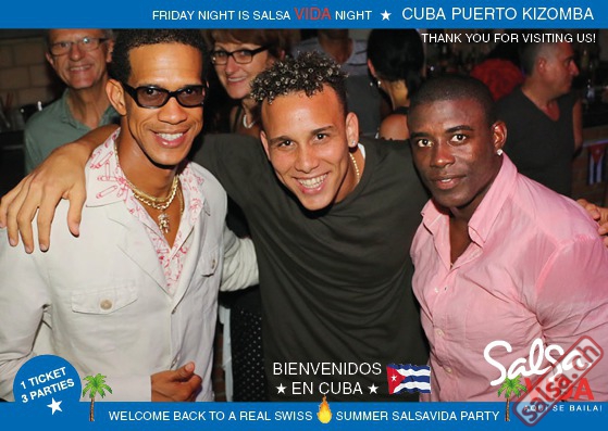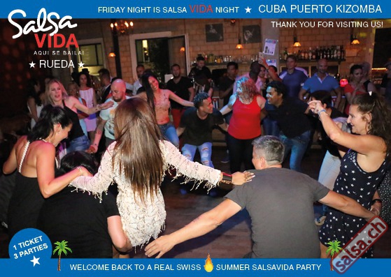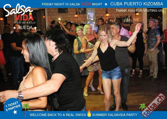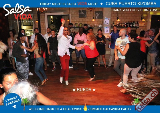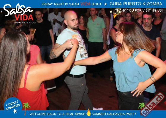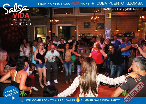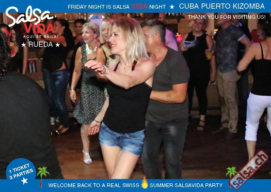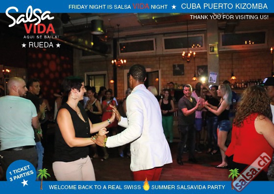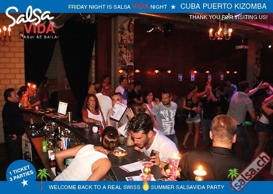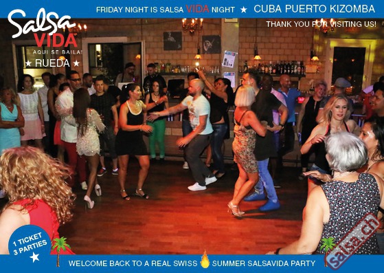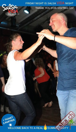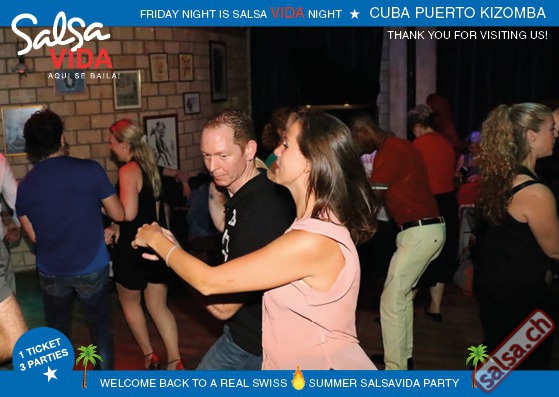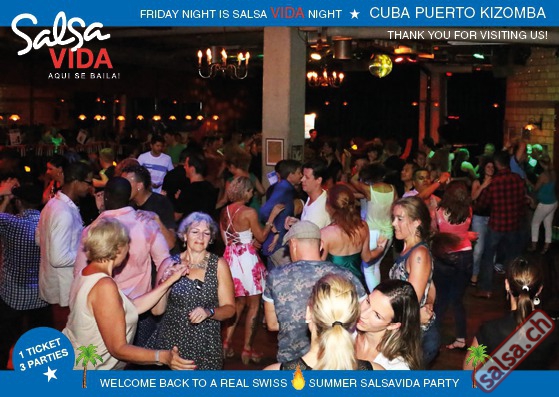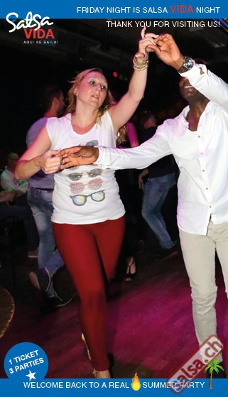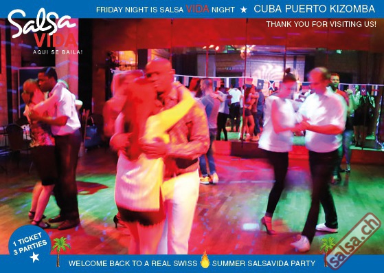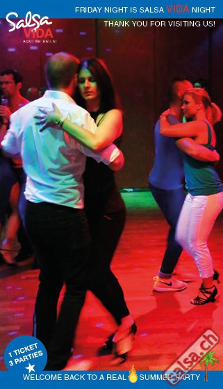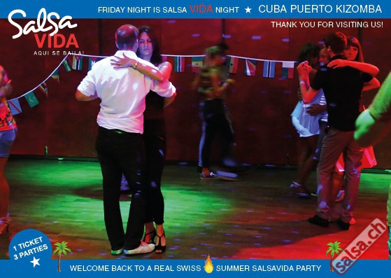 ★★★Friday Night is SALSAVIDA Night★★★ 1 Ticket = 3 Parties!!! ★★★★ VIDA PARTIES★★★★ ★ CUBA ★ PUERTO ★ KIZOMBA ★ ▶ 19 AUGUST 2016 ab 21:00 H / SALSAVIDA / ZÜRICH◀ Main Floor CUBA VIDA DOUBLE PACK ab 21:00 H ● MUSIC BY DJ MONTUNO | DJ EMIGRANTE ★Salsa Cubana ★Timba ★Son ★Cubaton ★Bachata ● ENTERTAINMENT BY MIJAIL GALANO (Cuba) 2nd Floor PUERTO VIDA ab 22:00 H ● MUSIC BY DJ PEPE ★SALSA PUERTO ★ALL STYLE ★ROMANTICA ★Cha cha cha ★BACHATA 3rd Floor KIZOMBA VIDA ab 22:00 H ● MUSIC BY DJ DERECK Resident DJ ★Kizomba ★Tarraxinha ★Semba ★Afrohouse ● 400m2 PISTA ● 3 DANCE FLOORS ● 3 TOP DJ’S ● 2 BARS ● EXCELLENT LOCATION ● NICE AMBIENCE ● FAIR PRICES ● GREAT DRINKS ● DANCE ● ENTERTAINMENT ● SHOWS ● RUEDA ● FUN ● FIESTAAA! VERLOSUNG: 2 Tickets für Fiesta Latina Candela Tropical Style DON’T MISS IT!!! Eine unvergessliche Tanznacht, Spass, Freude und Unterhaltung ist dabei garantiert! Eintritt CHF 15.- Event on Facebook: https://www.facebook.com/events/659811964176199/ Wir freuen uns auf DICH! SALSAVIDA aqui se bailaaa! Saludos Francesco & Salsavida Team Anfahrtsplan Salsavida Förrlibuckstrasse 62 in 8005 Zürich. Achtung: Für Salsavida Gäste, die mit dem Auto anreisen, bitte unbedingt das "Parkaus West" oder "Parkhaus Toni Areal" benutzen, da auf dem Salsavida und Club Silbando-Areal nicht überall geparkt werden darf. Tram Mit dem Tram findest du folgt zu uns: - Nr. 17 bis Förrlibuckstrasse - Nr. 4, 10, 11, 13, 15, 17 bis Escher-Wyss-Platz - Nr. 4 bis Technopark Bus Folgende Busse führen ebenfalls an die Förrlibuckstrasse: - Nr. 32, 33, 34, 46, 72 bis Escher-Wyss-Platz S-Bahn - Nr. 5, 6, 7, 9, 12 bis Bahnhof Hardbrücke Parkmöglichkeiten - Parkhaus Zürich-West an der Förrlibuckstrasse 151 - Parkhaus Toni Areal an der Pfingstweidstrasse 94 - West-Park an der Giessereistrasse - unter der Hardbrücke etc. Wieviele Gehminuten dauert es zum SALSAVIDA? - Escher-Wyss-Platz Salsavida 6 Minuten - Technopark Salsavida 6 Minuten - Parkhaus Toni Areal Salsavida 3 Minuten - Parkhaus Zürich-West Salsavida 4 Minuten - Bahnhof Hardbrücke Salsavida 12 Minuten