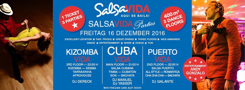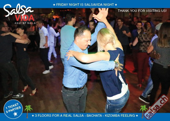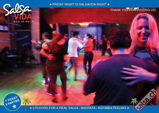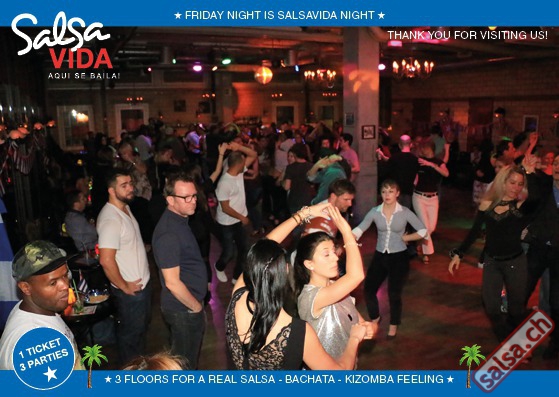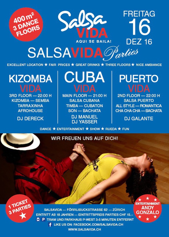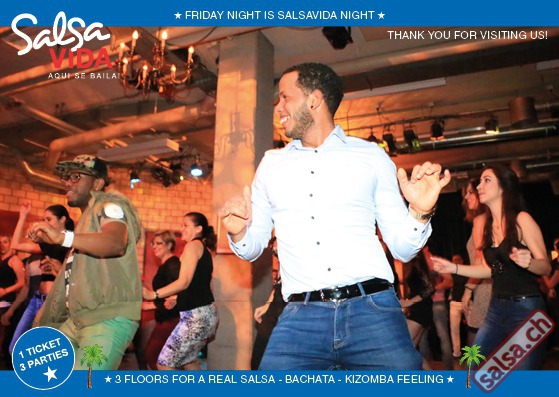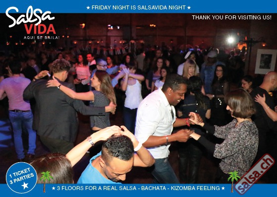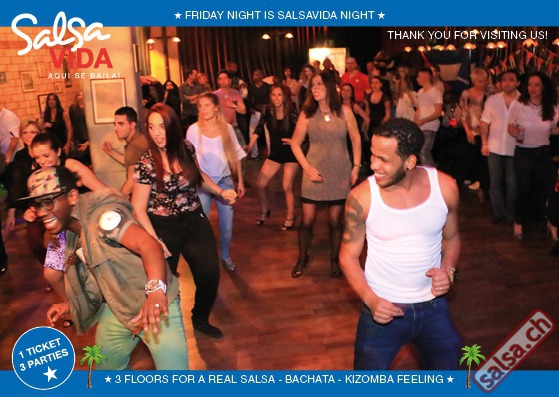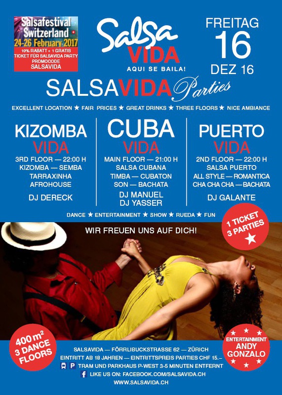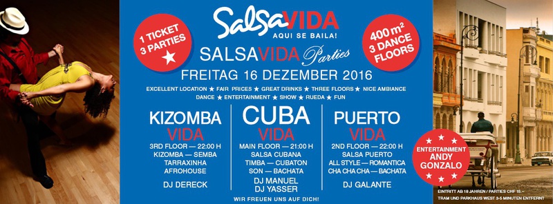 ★★★Friday Night is SALSAVIDA Night★★★ Event on Facebook: https://www.facebook.com/events/1607661052874941/ 1 Ticket = 3 Parties!!! ★★★★ VIDA PARTIES★★★★ ★ CUBA ★ PUERTO ★ KIZOMBA ★ ▶ 16 DEZEMBER 2016 ab 21:00 H / SALSAVIDA / ZÜRICH◀ Event on Facebook: Main Floor CUBA VIDA ab 21:00 H DUBLE PACK 100% CUBAAA! ● MUSIC BY DJ MANUEL / DJ YASSER (Cuba) ★Salsa Cubana ★Timba ★Son ★Cubaton ★Bachata ● ENTERTAINMENT BY ANDY GONZALO (Cuba) 2nd Floor PUERTO VIDA ab 22:00 H ● MUSIC BY DJ GALANTE ★SALSA PUERTO ★ALL STYLE ★ROMANTICA ★CHA CHA CHA ★BACHATA 3rd Floor KIZOMBA VIDA ab 22:00 H ● MUSIC BY DJ DERECK Resident DJ ★Kizomba ★Tarraxinha ★Semba ★Afrohouse VERLOSUNG: 2 TICKETS FÜR SALSAVIDA PARTY 2 PARTY PASS FÜR SALSAFESTIVAL SWITZERLAND 2017 1 TICKET FÜR BIGGEST SALSA & LATIN NIGHT VON JUANES X-TRA CLUB AM 31 DEZEMBER 2016 ● 400m2 PISTA ● 3 DANCE FLOORS ● 3 TOP DJ’S ● 2 BARS ● EXCELLENT LOCATION ● NICE AMBIENCE ● FAIR PRICES ● GREAT DRINKS ● DANCE ● ENTERTAINMENT ● SHOWS ● RUEDA ● FUN ● FIESTAAA! DON’T MISS IT!!! Eine unvergessliche Tanznacht, Spass, Freude und Unterhaltung ist dabei garantiert! Eintritt CHF 15.- Wir freuen uns auf DICH! SALSAVIDA aqui se bailaaa! Saludos Francesco & Salsavida Team Anfahrtsplan Salsavida Förrlibuckstrasse 62 in 8005 Zürich. Achtung: Für Salsavida Gäste, die mit dem Auto anreisen, bitte unbedingt das "Parkaus West" oder "Parkhaus Toni Areal" benutzen, da auf dem Salsavida und Club Silbando-Areal nicht überall geparkt werden darf. Tram Mit dem Tram findest du folgt zu uns: - Nr. 17 bis Förrlibuckstrasse - Nr. 4, 10, 11, 13, 15, 17 bis Escher-Wyss-Platz - Nr. 4 bis Technopark Bus Folgende Busse führen ebenfalls an die Förrlibuckstrasse: - Nr. 32, 33, 34, 46, 72 bis Escher-Wyss-Platz S-Bahn - Nr. 5, 6, 7, 9, 12 bis Bahnhof Hardbrücke Parkmöglichkeiten - Parkhaus Zürich-West an der Förrlibuckstrasse 151 - Parkhaus Toni Areal an der Pfingstweidstrasse 94 - West-Park an der Giessereistrasse - unter der Hardbrücke etc. Wieviele Gehminuten dauert es zum SALSAVIDA? - Escher-Wyss-Platz Salsavida 6 Minuten - Technopark Salsavida 6 Minuten - Parkhaus Toni Areal Salsavida 3 Minuten - Parkhaus Zürich-West Salsavida 4 Minuten - Bahnhof Hardbrücke Salsavida 12 Minuten