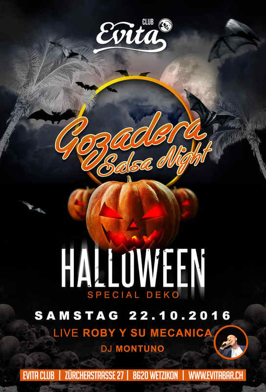 Samstag: 22.10.2016 GOZADERA Salsa Night Uhrzeit: 22:00 Line up: DJ Montuno Live: Roby y su mecanica Sound: Salsa, Timba, Merengue, Bachata, Kizomba Thema: Halloween Special It`s Gozadera-Time! Gerade am Monatsbeginn ist die neue Eventserie im Wetzikon mit Saus und Braus gestartet, da geht es heute in die zweite Runde. Und das gleich mit einem Special. Die Party steht unter dem Motto Halloween und da darf sich auch verkleidet werden. Das hat den grossen Vorteil, dass man sich unter der Maske mal so richtig und ohne Reue austoben kann – es erkennt einen ja keiner! Für ein ordentliches Hörvergnügen sorgen dabei DJ Montuno, der Salsa, Timba, Merengue, Bachata und Kizomba durch die Boxen schallen lässt, und Roby y su mecanica, der live auftritt und für seine furiose und mitreissende Show hinlänglich bekannt ist. Der „Gozadera“-Abend macht seinem Namen alle Ehre: Das wird eine „Wahnsinnsfeier“.