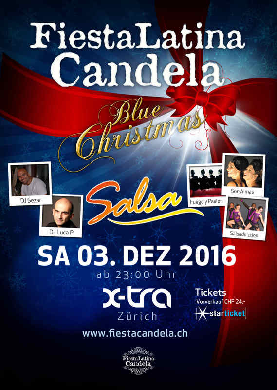 Samstag, 03. Dezember 2016 ab 22:00h im X-TRA am Limmatplatz Zürich Join: http://www.facebook.com/events/360211060996885 Book: http://www.starticket.ch/start.asp?EventID=3503 Fantastische Shows, viele Überraschungen und sehr viel Party! Eine abwechslungsreiche Reise durch sechs verschiedene Welten feinster karibischer Rhythmen wie Salsa, Son, Kizomba, Bachata, Reggaeton, Timba, Cumbia bis hin zu Vallenato. Shows mit Salsaddiction aus Rotterdam, Son Almas aus Bern und Fuego y Pasion aus Zürich. Unser Guest-DJ dieses Abends ist DJ Sezar aus Oslo. Ausserdem legen auf: DJ Luca P, DJ U.S.Thaler, DJ Cochano, DJ Bomba, DJ Montuno, DJ Chévere, DJ Virus und DJ Benji. Vorverkauf 24.- an allen üblichen Vorverkaufsstellen. Vorverkauf auf www.starticket.ch Abendkasse 29.- Alle Infos auf www.fiestacandela.ch