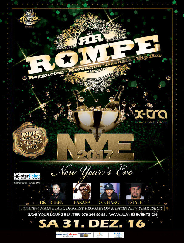 ** ROMPE ** BIGGEST REGGAETON NEW YEAR PARTY SAMSTAG 31. DEZ. 2016 X-TRA CLUB ZÜRICH