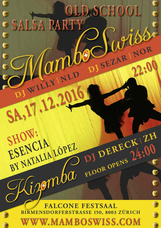 MamboSwiss would like to invite you to the last party in 2016. We’re looking forward to an exciting evening with you. DJ Willy Amsterdam, DJ Sezar Norway and DJ Dereck Zurich will present their great musical diversity and will make your legs bounce and swing. All this will be sweetened with a show of Esencia Ladies by Natalia Lopez. Your donations will go to the organisation Medair (http://relief.medair.org/en/countries/iraq/) to support their operation in northern Iraq, where they care for casualties who were injured by ISIS during the liberation of the city of Mosul. We’re looking forward to all of you! Your MamboSwiss Team -- Die MamboSwiss lädt zur letzten Party im 2016 ein. Wir freuen uns auf einen aufregenden Abend mit euch. Dj Willy Amsterdam, Dj Sezar Norway und Dj Dereck Zürich werden euch ihre musikalische Vielfalt präsentieren und eure Beine hüpfen und schwingen lassen. Das Ganze wird mit einer Show von Esencia Ladys von Natalia Lopez versüsst. Die Spende geht dieses mal an die Organisation Medair (http://relief.medair.org/de/countries/iraq/) für ihren Einsatz, Verletzte in Nordirak zu versorgen, die bei der Befreiung der Stadt Mosul von der IS verwundet wurden. Wir freuen uns auf euch! Euer MamboSwiss Team -- All evnets / Alle Events: - Jan. 16th: https://www.facebook.com/events/492523080911645/ - Feb. 20th: https://www.facebook.com/events/1637453203207656/ - Mar. 19th: https://www.facebook.com/events/710623982394282/ - Apr. 16th: https://www.facebook.com/events/1679155238982609/ - May 21st: https://www.facebook.com/events/126609821009432/ - Aug. 20th: https://www.facebook.com/events/510586099108824/ - Sep. 17th: https://www.facebook.com/events/867992956651231/ - Oct. 14th + 15th: https://www.facebook.com/events/701137433323647/ - Dec. 17th: https://www.facebook.com/events/730193197112331/ -- Das Jahr 2016 heisst für uns alle ein Jahr der Solidarität. Mit MamboSwiss Charity wollen wir ein ganzes Jahr notdürftigen Menschen helfen. Dabei arbeiten alle zusammen; - Organisator - Teammitglieder - Djs - Artisten - Falcone-Team und natürlich Ihr, unsere Gäste. Ihr seid die direkten Unterstützer dieser Projekte. Mit eurem Eintritt und Euren Spenden ist es möglich, die Fixkosten für die einzelne Party zu decken und das übrige Geld an gemeinnützige Organisationen zu spenden. Ich bin unendlich dankbar für Euer Vertrauen und möchte mich an dieser Stelle herzlich bei meinem Team bedanken, welches in den letzten drei Jahren seine Arbeit immer gratis geleistet hat und dies auch im 2016 tun wird. Mein Dank geht weiter an die Djs, Artisten und ans Falcone-Team, welche grösstenteils auf ihrer Gagen verzichten, damit eine möglichst grosse Spendensumme entstehen kann. Zusammen sind wir stark! Euer Ramy -- The year 2016 will be a year of solidarity for all of us. For an entire year, we want to help people in need with MamboSwiss Charity. To make this happen, everybody will be working together: - organizer - team members - DJs - artists - Falcone team and of course you, our guests. You give your direct support to these projects. With the entrance fees and your donations it is possible to cover the fixed costs of the party and donate the remaining money to charitable organisations. I am eternally grateful for your trust and I would like to take this opportunity to express my warmest thanks to my team, who have been working for free in the last three years and will continue to do so in 2016. I would also like to thank the DJs, artists and the Falcone team, who have largely agreed to waive their pay in order to help achieve as big a donation as possible. Together we are strong! Yours, Ramy
