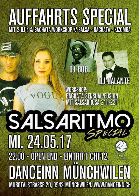 YEAHHH… SALSARITMO Special am MITTWOCH! >> 21 Uhr - 22 Uhr "gratis" BACHATA WORKSHOP mit SALSABROSA >> SALSA all Styles - BACHATA - KIZOMBA… >> Verlosung 1x Fullpass SALSAFESTIVAL BODENSEE (CHF 129.-) Music by: DJ BOB und DJ GALANTE Die wunderschöne Location in Münchwilen sticht heraus mit einem perfekt für Tänzer/innen eingebautem Parkettboden und einem einmaligen Ambiente... (gratis Parkplätze) Wir freuen uns auf eine tolle Party! A bailar y gozarrr...