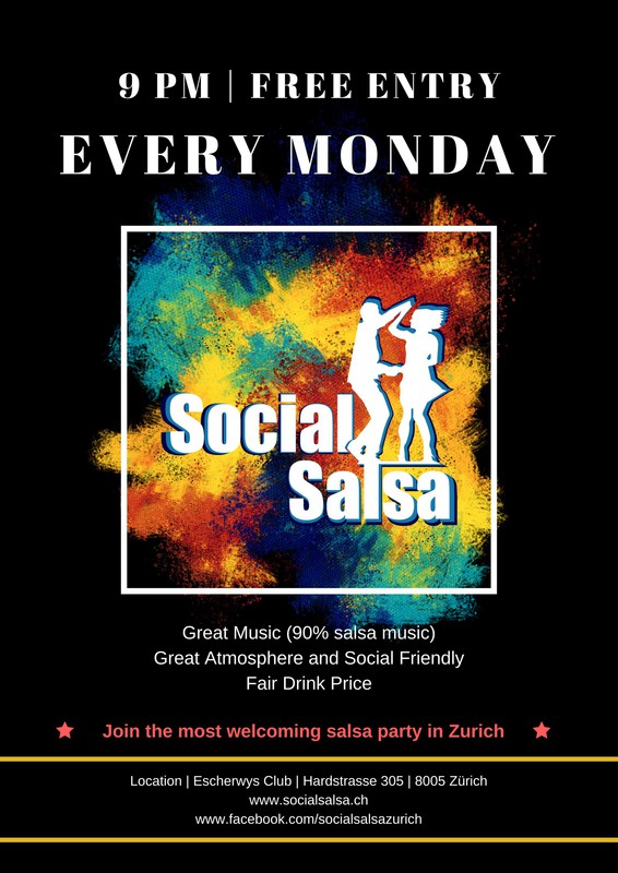 Free Entry Salsa Party Every Monday @9pm Music 90% Salsa, 10% mix of Bachata and Kizomba ******************************************** 2018 will be a great year! Join Social Salsa to meet new people and make more friends Social Salsa is not just a dancing party, but also a social community You will be greeted and welcomed from the first time you walk in ******************************************** Website www.socialsalsa.ch Follow the event on Facebook https://www.facebook.com/socialsalsazurich/ Register for regular classes before party ticketfrog.ch/socialsalsafebuary Join the group www.facebook.com/groups/506272509744189/