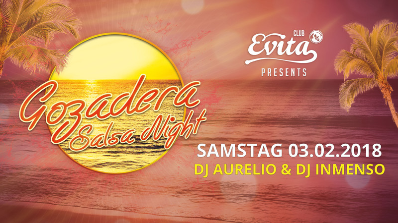 ☀️🌴 GOZADERA SALSA NIGHT 🌴☀️ SAMSTAG 03. FEBRUAR 2018 GREAT SALSA DUO: 🎼 DJ INMEMSO 🎧 🎼 DJ AURELIO🎧 (EL PADRINO, BARRIO LATINO) 🕎🔪 EVITA CLUB WETZIKON ZH 🕎🔪 💚 WE LOVE GOZADERA 💚 Open Door´s @22:00 Sound & Style SALSA I TIMBA I MERENGUE I BACHATA I KIZOMBA