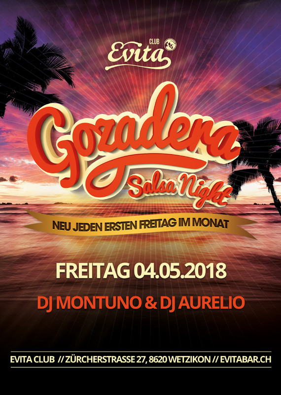 TONIGHT / ESTA NOCHE/ QUESTA SERA ☀️🌴 GOZADERA SALSA NIGHT 🌴☀️ FREITAG 04. MAI 2018 GREAT SALSA DUO: 🎼 DJ MONTUNO🎧 ( CUBAN SESSION 🎼 DJ AURELIO🎧 (EL PADRINO, BARRIO LATINO) EVITA CLUB WETZIKON ZH ❤ WE LOVE GOZADERA ❤ Open Door´s @22:00 Sound & Style SALSA I TIMBA I MERENGUE I BACHATA I