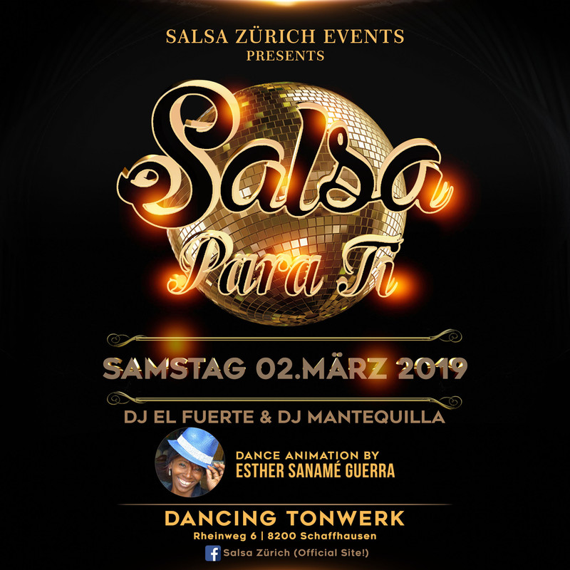 SAMSTAG 02. MÄRZ 2019 - "SALSA PARA TI" ✪✪✪ DJ EL FUERTE Ι DJ MANTEQUILLA ✪✪✪ Salseras und Salseros seid willkommen! An dieser Edition wird Ester Sanamé Guerra mit ihrer langjähriger Erfahrung als Tänzerin, den Abend mit viel Enthusiasmus animieren. DJ's: EL Fuerte & Mantequilla Salsa Party: 21:30 bis 02:30 Eintritt: nur: CHF 12.— Die neue Veranstaltung SALSA PARA TI im Dancing Tonwerk findet jeden Monat statt und zwar stets am Samstag Abend. Die Dj's EL Fuerte & Mantequilla legen diesmal die angesagten SALSA Ι TIMBA Ι BACHATA Ι KIZOMBA Musik auf. ✪ 100 m² Tanzfläche (bester Parket!) ✪ Top Latin Athmosphäre! ✪ Genügend Sitzplätze vorhanden. ✪ Nur die besten Salsa Deejas! ✪ Tolle Drinks und günstige Getränke ✪ Bushaltestelle 'Kreuz' nur 200 m entfernt ✪ 300 Parkplätze im Parkhaus Rhypark (sehr günstiger Nachttarif) ✪ Direkter Zugang vom Parkhaus ins Dancing Tonwerk Powered by «Salsa Zürich Events» Location: ➤ DANCING TONWERK, Rheinweg 6, 8200 Schaffhausen, Tel: 052 624 60 55 - https://www.tanzzentrum-sh.ch/ Google Map: https://goo.gl/maps/WE6BUWUNQ9w Parkhaus Rhypark: https://goo.gl/maps/i16Z2wwX28v Organisator: SALSA ZÜRICH EVENTS ➤SALSA ZÜRICH (OFFICIAL SITE!) https://www.facebook.com/groups/657527807618090/ https://www.facebook.com/events/1047348408806021/