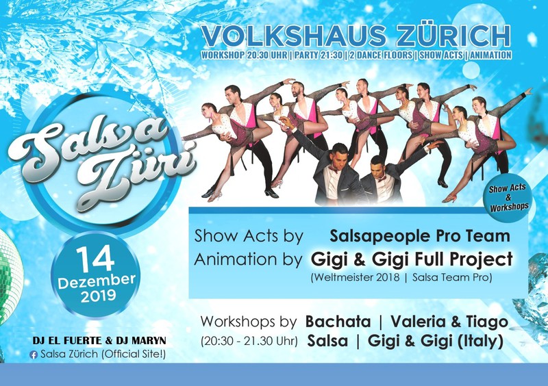 SALSA ZÜRICH EVENTS presents Herzlich Willkommen bei "SALSA ZÜRI" im Volkshaus Zürich. SAMSTAG 14. Dezember 2019 mit Weltmeister in LAS VEGAS 2018 "GIGI & GIGI" https://www.full-project.com/video-full ► Party auf verschiedene Floors ab 21:30 Uhr ► 2 Gratis Workshops von 20:30h bis 21:30h ► Top Location ► Show Acts ► Animation ► Top Dj`s Eintritt Abendkasse: Nur CHF 20.-- Inkl. 2 Workshops & SALSA BIG Party Garderobe: Gratis! Neue Parkmöglichkeiten gleich neben dem Volkshaus: "Parkhaus Helvetiaplatz" Adresse: Molkenstrasse 5/9, 8004 Zürich Telefon: 044 229 50 50 ☆☆☆ WELCOME AND ENJOY THE PARTY ☆☆☆ ► PARTY AUF VERSCHIEDENE FLOORS AB 21:30 UHR • MAIN FLOOR: • Salsa Puertorriqueña, Salsa All-Styles, Salsa Cubana, Timba • mit DJ EL FUERTE • SENSUAL FLOOR: • 100% Bachata, Kizomba • mit DJ Juanqui Jay ► ANIMATION "WELTMEISTER 2018 - GIGI & GIGI" im MAIN FLOOR ► LIVE ACTS ca. 24:00 Uhr im MAIN FLOOR ☆ Salsapeople Pro Team ☆ New Show!!! Anteprima für Miami 2020 ====================================================== ► WORKSHOPS PROGRAMM 20:30H - 21:30H ALL LEVELS WS01 | Special Salsa by "GIGI & GIGI" Weltmeister Las Vegas 2018 WS02 | Special Bachata by Valeria & Tiago ====================================================== LOCATION: Volkshaus • Stauffacherstrasse 60 • 8004 Zürich INFO & Zeitplan der Workshops: Volkshaus Zürich, Samstag, 14. Dezember 2019 Zeit: 20:30 - 21:30 // Workshop 1 - Spezial Bachata by Valeria & Tiago Zeit: 20:30 - 21:30 // Workshops 2 - Salsa mit "Gigi & Gigi" (Weltmeister Las Vegas 2018) "Salsa Zürich Events" Veranstalten von Salsa Parties mit den besten Dj's und Live Performances FBGroup: https://www.facebook.com/groups/657527807618090/ Über den Veranstaltungsort: Volkshaus Zürich, Stauffacherstrasse 60, 8000 Zürich https://www.facebook.com/events/718802188640532/