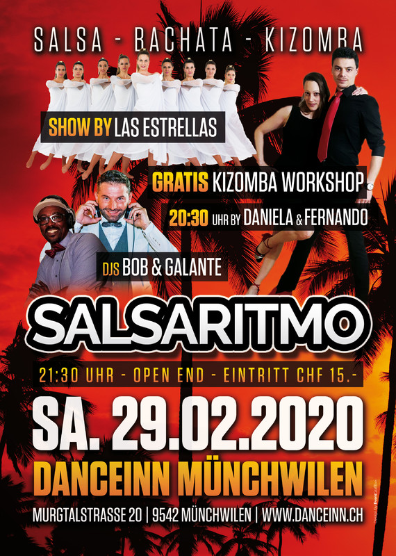 Yeahh... Die SALSA-BACHATA-KIZOMBA Party mit Super Location und tollem Programm! 🔘Workshop KIZOMBA 20:30 Uhr (gratis) by DANIELA & FERNANDO >> Party ab 21:30 Uhr 🔘Show: LAS ESTRELLAS 🔘DJ‘s: BOB & GALANTE A bailar y gozar...