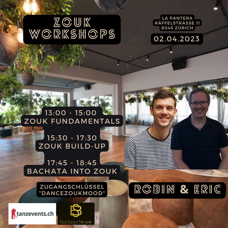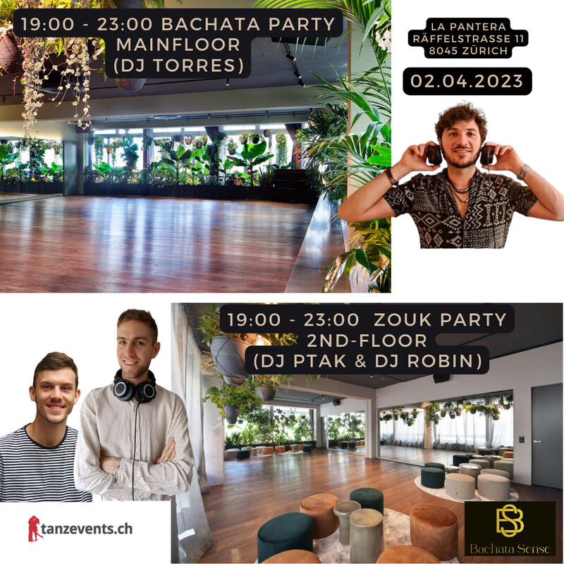 It's time to dance! 13:00 - 15:00 Zouk Fundamentals (2nd Floor) - Eric & Robin (Dancezouk.ch) 15:30 - 17:30 Bachata Beginner Workshop (Mainfloor) - Martin y Sabrina (Bailadoro Basel) 15;30 - 17:30 Zouk Build-Up (2nd Floor) - Eric & Robin (Dancezouk.ch) 17:45 - 18:45 Bachata into Zouk (Mainfloor) - Eric & Robin (Dancezouk.ch) 19:00 - 23:00 Party Mainfloor Bachata / 2nd Floor Zouk Komm und feiere mit uns den Frühling am 02. April auf unserem heiss ersehnten Tanzevent! Ab April haben wir etwas Besonderes für dich vorbereitet: Neben dem Bachata-Mainfloor haben wir einen zweiten Floor mit Zouk für alle Tanzbegeisterten hinzugefügt. Lerne von erfahrenen Instruktoren in unseren Workshops auf beiden Floors und bringe deine Tanzfähigkeiten auf ein neues Level. Doch das ist noch nicht alles! Nach den Workshops geht es los mit unserer Party, bei der du zu den besten Klängen von Bachata und Zouk auf beiden Floors abfeiern kannst. Lass die Musik deine Seele bewegen und tanze durch den Sonntag! Sichere dir jetzt dein Ticket für unser Tanzevent und sei Teil einer unvergesslichen Nacht voller Tanz, Musik und guter Laune. Wir sehen uns am 02. April! - Über 200m2 Tanzfläche - Professionelles Musiksystem - Bar - Viele Pflanzen - Gratis Leitungswasser - Gratis Garderobe (Ohne Haftung) - Fotograf und Videograf https://eventfrog.ch/de/p/party/latin-brasil/bachata-loves-zouk-7008049479904303729.html