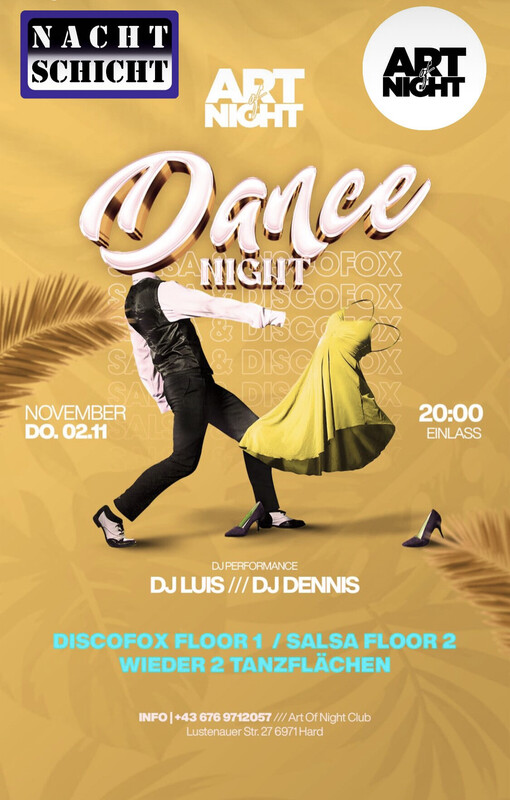 Salsa Night & Disco Fox immer Donnerstag im "Art of Night" (Ex-Nachtschicht) ab 20:00 Kommen Sie und genießen Sie mit uns in unseren beiden Tanzräumen eine fantastische Atmosphäre aus lateinamerikanischen Rhythmen und Disco Fox mit unseren beiden fantastischen DJs. - Floor 1: Salsa, Bachata, Merengue mit Dj Luis - Floor 2: Disco Fox mit Dj Dennis Adresse: Lustenauer Strasse 27, 6971 Hard-Österreich Gratis (500 Meter Parkplatz, Sektempfang und warmes Buffet) ******************** Fotos von Anna’s Photography ********************