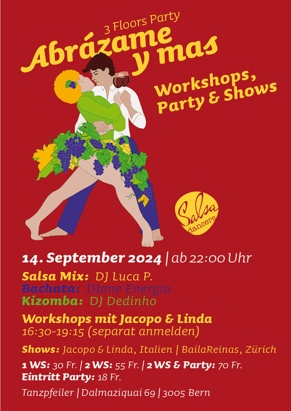 3 Floors Party ab 22 Uhr – Salsa Mix Floor – Bachata Floor – Kizomba Floor Verschiedene DJ's spielen für euch das Beste aus Salsa Cubana, Bachata, Reaggaeton, New York Style on2, Salsa Puerto, Chachacha und Kizomba. Eintritt: 18 Fr. / MC: 13 Fr. NUR BARZAHLUNG MÖGLICH