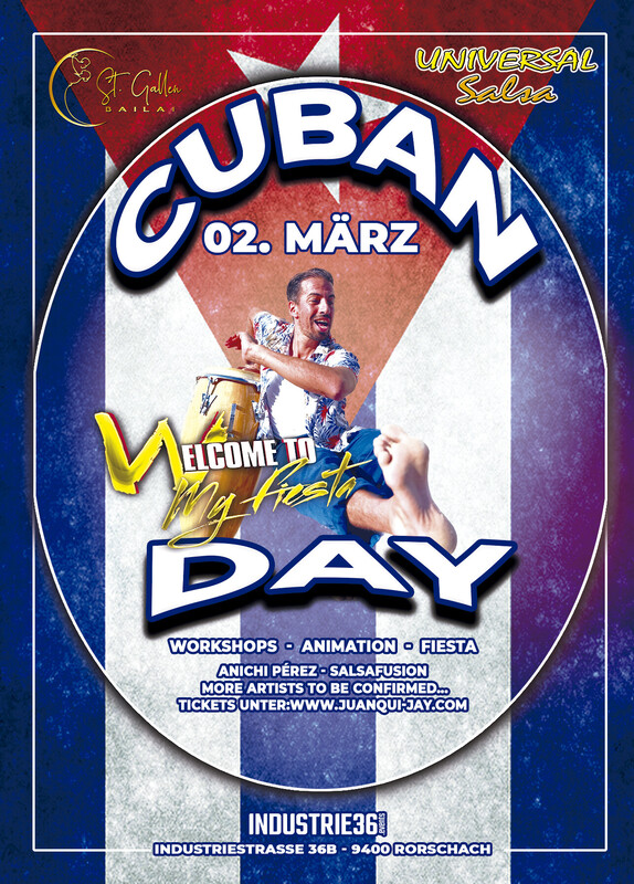 Herzlich Willkommen zu unsererm CUBAN DAY. Am 02. MΓ€rz 2024 prΓ€sentieren wir ein Event der Extra-klasse. βEs erwartet Euch einen Tag mit Workshops Cuban Style unterrichtet von nationalen und internationalen Instruktoren und einen Abend mit Social Dance, Animation und Tonnen Spass. ββWir freuen uns auf einen Tag voller Freude, Spass und heissen Rhythmen in der INDUSTRIE36 KULTURFABRIK.β β π Top Artisten / DJ's π Workshops π Social Dance π Animation π Fiesta 100% kubanische Music (ChagΓΌi - Son - Cha Cha Cha - Mambo - Charanga - Timba und mehr) β β β β β β β β β β PROGRAMM β β β β β β β β β β 11:00 - 18:00 Uhr Workshops 100% Cuban Style mit unseren sehr talentierten Instruktoren von Son bis zum Reggaeton und Despelote. βΌοΈWICHTIGβΌοΈ Die Workshops setzen Grundkenntnisse voraus β β β β β β β β β β LINEUP β β β β β β β β β β β * Anichi Perez * Alexander & Catherine * Adrian & Celine * Juanqui & Rahel * More artists to be added. β β β β β β β β β β DEEJAYS β β β β β β β β β β * Cigarro * Juanqui Jay *ANIMATION, SOCIAL DANCE & FIEEESTAAAA!!! β β β β β β β β β β PREIS β β β β β β β β β β VORVERKAUF *FULLPASS CHF 70.- Workshops + Social Dance + Party *WORKSHOPS PASS CHF 55.- Only Workshops. *CHF 45.- Workshops 3er. Pack 3 Workshops deiner Wahl. *Fun Pass CHF 20.- Social Dance & Party. ABENDKASSE *FULLPASS CHF 80.- Workshops + Social Dance + Party *WORKSHOPS PASS CHF 65.- Only Workshops *WORKSHOPS 3er. PACK CHF 55.- Workshops Deiner Wahl. *Fun Pass CHF 20.- Social Dance & Party. β β β β β Weitere Infos & Anmeldung unter: β β β β β www.juanqui-jay.com/cuban-day-tickets Samstag 02. MΓ€rz 2024 INDUSTRIE36 Industriestrasse 36b 9400 Rorschach SE FORMΓ EL RUMBΓN!!! www.juanqui-jay.com/cuban-day