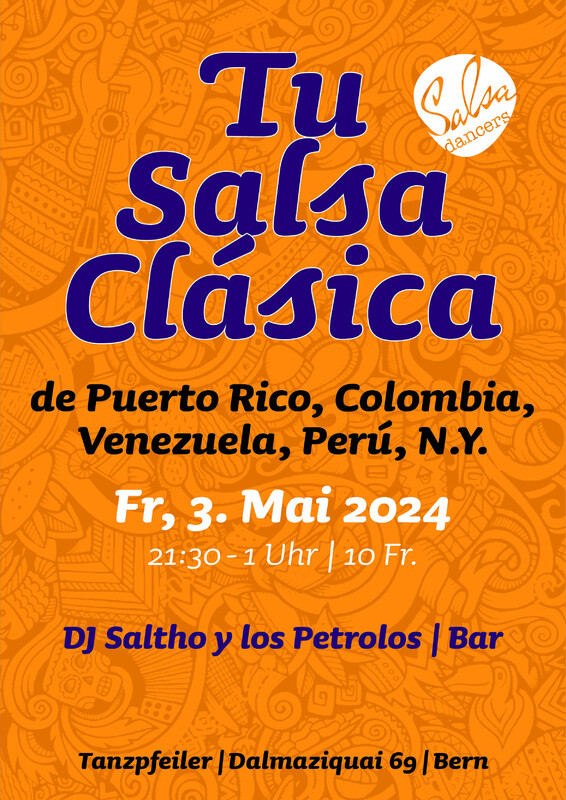 Der Tanzevent für alle Salseras und Salseros, die gerne einen Abend lang zu ihrem bevorzugten Musikstil tanzen möchten. Ein bis zweimal pro Monat an einem Freitag steht die Musik aus Puerto Rico, Kolumbien, Venezuela, Dominicana, Peru und New York im Zentrum. Neben den Klassikern aus den 1970er Jahren fliessen auch hörenswerte songs aus der Folgezeit sowie Neuerscheinungen mit ins Programm von DJ Saltho und DJ Luca ein. Tu Salsa Clasica ist ideal zum Tanzen on2, aber selbstverständlich sind alle anderen Tanzstile auch willkommen.