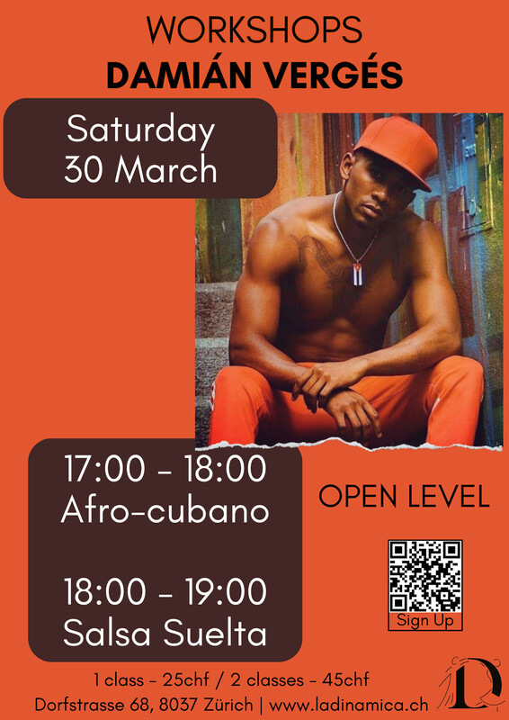 Want to dive into the world of Cuba? Attend our monthly workshops with Damián Vergés from Cuba. All classes are open level. 17:00 - 18:00 Afro-Cubano 18:00 - 19:00 Salsa Suelta 1 Class 25CHF 2 Classes 45CHF See you soon 🫶 Sign up https://forms.office.com/r/kuhDkkwkcZ 🗓 30 March 📍 Dorfstrasse 68, 8037 Zürich www.ladinamica.ch