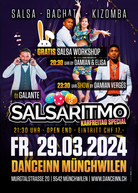 🎼💃🏻🕺🏾Let‘s Dance in einer der schönsten Location der Ostschweiz. Die Karfreitag „Special Party“ ist wie jedes Jahr ein Garant für viel Spass, Tanzen und Freunde treffen🥳💃🏻🕺🏾❤️.. Programm: ➡️20:30 - Gratis SALSA Workshop by DAMIAN & ELISA💃🏻🕺🏾🔥.. ➡️21:30H - Open End Partytime! ➡️23:30H - SHOW by DAMIAN VERGÉS🇨🇺 ➡️Music by: DJ GALANTE🎧 Wir freuen uns auf einen Super Workshop und Mega Show von einem der aktuell besten 🇨🇺Tänzer der Schweiz!