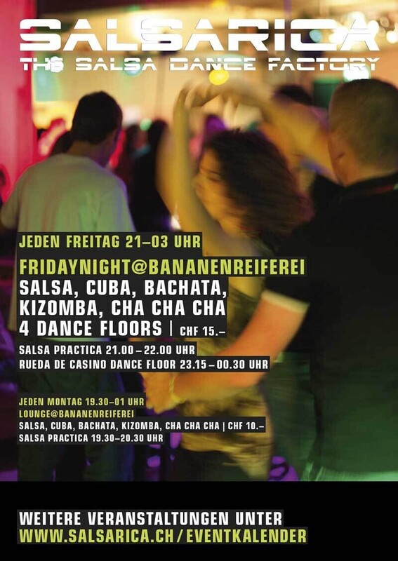 Jeden Freitag 21:00 - 03:00h Salsa, Bachata, Cha-Cha-Cha, Son 4 Dance Floors Entry CHF 15.- (inkl. SalsaPractica) 370m2 Dancefloor / Lounge & Bar Türöffnung 21 Uhr 21.00 Uhr 1 Stunde SalsaPractica mit Tanzlehrer 22.00 Uhr Main Floor DJ Manuel 23.15 Uhr Bachata Floor DJ Ivan 23.15 Uhr Kizomba Floor DJ Nuno 23.15 Uhr Rueda de Casino Floor mit Animation SalsaPractica Tanzlehrer sind von 21h - 22h auf dem Parkett, beantworten Fragen, lösen Knöpfe, geben technische Tipps etc. Die ideale Übungsstunde - die Musik ist noch moderat im Tempo und Hilfe ist in Griffnähe. Diese Stunde eignet sich auch gut um sich niveaumässig einstufen zu lassen. Das Practica ist im Preis für die Party inbegriffen. Rueda de Casino Dancefloor Ruedaliebhaber dürfen sich freuen! Auf diesem Dancefloor wird nur Rueda de Casino getanzt. Dies mit Animation durch Cantante mit aktuellen Salsas. Das Niveau wird angepasst an die Salseras und Salseros und die Figuren werden bei Bedarf erklärt und präzisiert. Lady -Tipps und Vertiefung der spanischen Begriffe gibts kostenlos dazu. https://www.salsarica.ch/eventkalender.html
