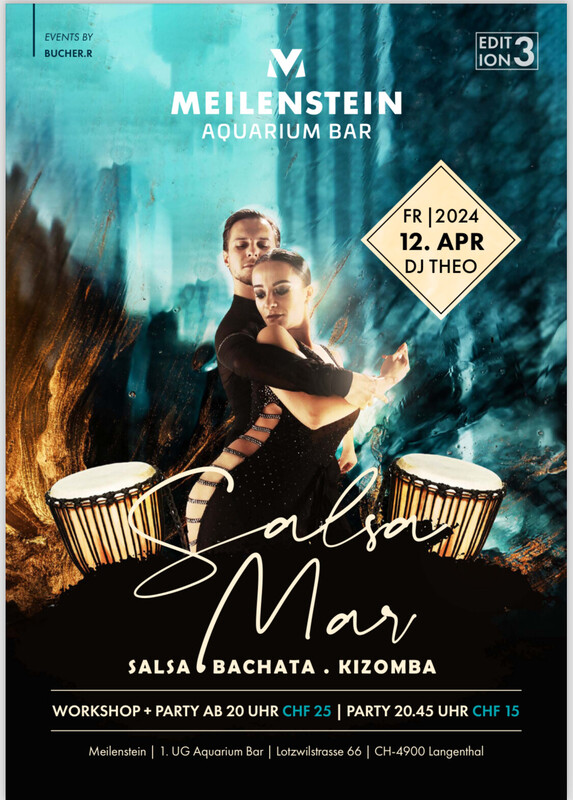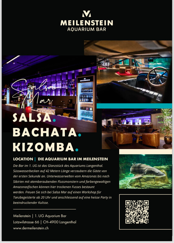 💃 Salsa Mar 💃 Freitag, 12.4. 2024, 20:00 Uhr 💃 Salsa Mar 💃 Die Bar im 1.UG ist das Glanzstück des Aquariums Langenthal. Süsswasserbecken auf 42 Metern Länge verzaubern die Gäste von der ersten Sekunde an. Unterwasserwelten vom Amazonas bis nach Siebirien mit atemberaubenden Flussmonstern und farbengewaltigen Amazonasfischen können hier trockenen Fusses bestaunt werden. Freuen Sie sich bei. 💃Salsa Mar💃 Auf einen Workshop für Tanzbegeisterte ab 20.00-20.45 und anschliessend 20.45 auf eine heisse Party In beeindruckender Kulisse bis 02.00 Workshop & Party. 25.- 20.00-02.00 /Party 15.- 20.45-02.00 💃Bachata Workshop 💃 Mit Stephan Brunner & Tanja Schön' Freundlich erwarte ich Dich auf eine weitere Unvergessliche Party Lg Reto & Team