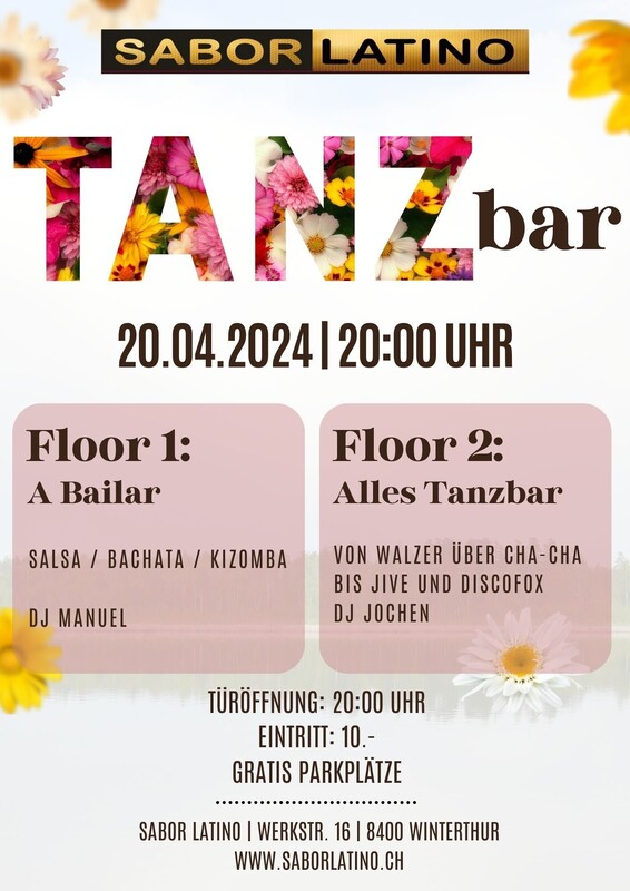 Tanzbar, Tanzbar, die  Party für alle Freunde der Tanzmusik, von Salsa, Bachata, Kizomba, Discoswing, Rumba, Walzer, Jive, Tango und mehr. Auf 2 Dancefloors legen legen die DJ`s die beste auf. In den Lounge kann man sich zwischendurch mit einem unserer feinen Cocktails entspannen und für neue Tänze aufladen. Salsafloor: DJ Manuel Standardfloor: Jochen