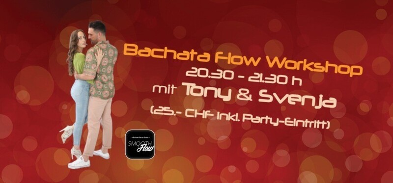 Bachata Workshop mit Tony & Svenja (Smooth & Flow) inkl. Party-Ticket für Fiesta Pasión Lerne neue Bachata Figuren mit Tony & Svenja (Smooth & Flow) und tanze diese gleich anschliessend an der Fiesta Bachata ab 21:30 Uhr im Bachata-Floor mit DJ Ñoño! Workshop inkl. Party-Eintritt für 25.- CHF Abendkasse oder Vorverkauf via Eventfrog: https://eventfrog.ch/de/p/kurse-seminare/musik-tanz/bachata-flow-workshop-mit-tony-svenja-smooth-flow-7177622434190705625.html