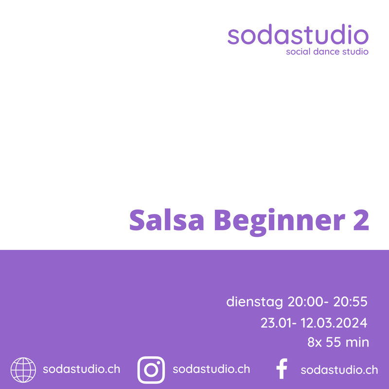 Starte deine Salsa Reise mit uns! Unsere Salsa Beginner 2 Class richtet sich an Teilnehmer mit ersten, kleinen Vorkenntnissen, an Wiedereinsteiger und an alle, die Interesse haben ihre Grundlagen auszubauen und zu festigen. Wir trainieren die wichtigsten Grundlagen des Salsa, damit du in Kürze auf der Tanzfläche Spass haben kannst. Wir erklären dir den Aufbau von Salsa Musik und du lernst anhand von coolen Übungen die Rhythmik zu verstehen und mit deinem Körper umzusetzen. Einfache Figuren kannst du nach diesem Kurs fliessend tanzen. Lass dich von uns auf eine Reise voller Spass, Musikalität und Lebensfreude mitnehmen! Was du in diesem Kurs lernst: - Du lernst den Grundschritt und verschiedene Variationen des Grundschritts. - Wir schulen dein Taktgefühl und vermitteln dir erste Konzepte im Führen und Folgen. - Du lernst die wichtigsten Positionen und einfache Figuren. - Du übst mit und ohne Partner. Kursdaten und Preis: DI 26. März bis DI 21. Mai 2024 | 20:00 - 20:55 (DI 2. April Osterpause/kein Kurs) 8x 55 Min. | 240.-/Person Deine Tanzlehrer: Wir, Francesco und Mirjam von sodastudio, freuen uns darauf, dich auf deinem tänzerischen Weg zu begleiten und mit dir viele unterhaltsame und lehrreiche Stunden zu verbringen! Kontakt bei Fragen: Du kannst uns jederzeit über unser Kontaktformular auf sodastudio.ch oder per Mail info@sodastudio.ch kontakieren. https://www.silkk.ch/kurse/Salsa-Starter24-10-2023-19009-23