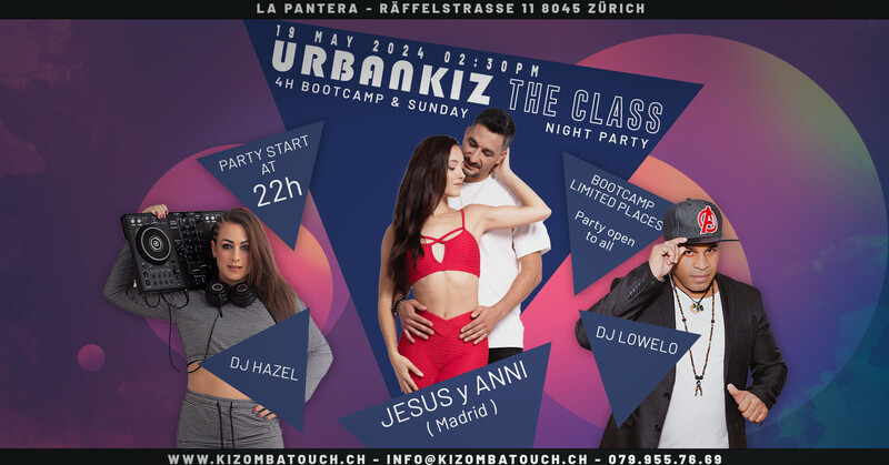 Let's celebrate Pfingsten Sunday with an amazing boot camp Jesus Y Anni ( From Madrid ) for the first time in Zurich Program -2:30 pm First part of the Bootcamp with Jesus y Anni -4:30 pm Break to get your power back -5:30 pm Second part of the Bootcamp with Jesus y Anni -10 pm - 4 am Night party with DJ Lowelo, Dj Hazel Location - La Pantera, Räffelstrasse 11 Zürich https://www.kizombatouch.ch/event-details/urban-kiz-the-class-sunday-dinner-party-with-jesus-y-anni