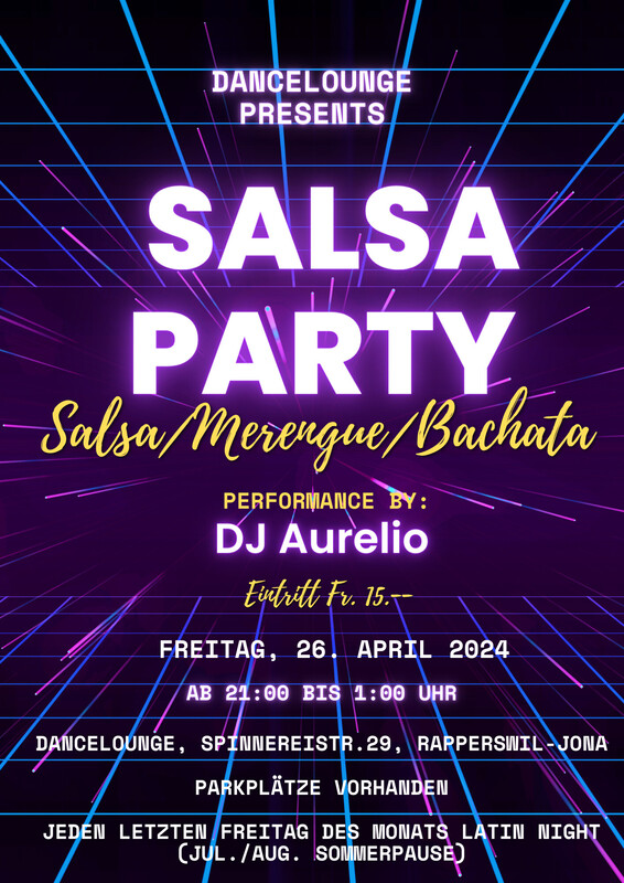 Dancelounge Martin Grob 26 de abril de 2024 21:00 Salsa Party con DJ Aurelio Estuviste en este evento? Agrega tus fotos! Salsa/Merengue/Bachata https://www.dancelounge.ch/events/ Precio de entrada: CHF 15.00 Share on Facebook Eventos
