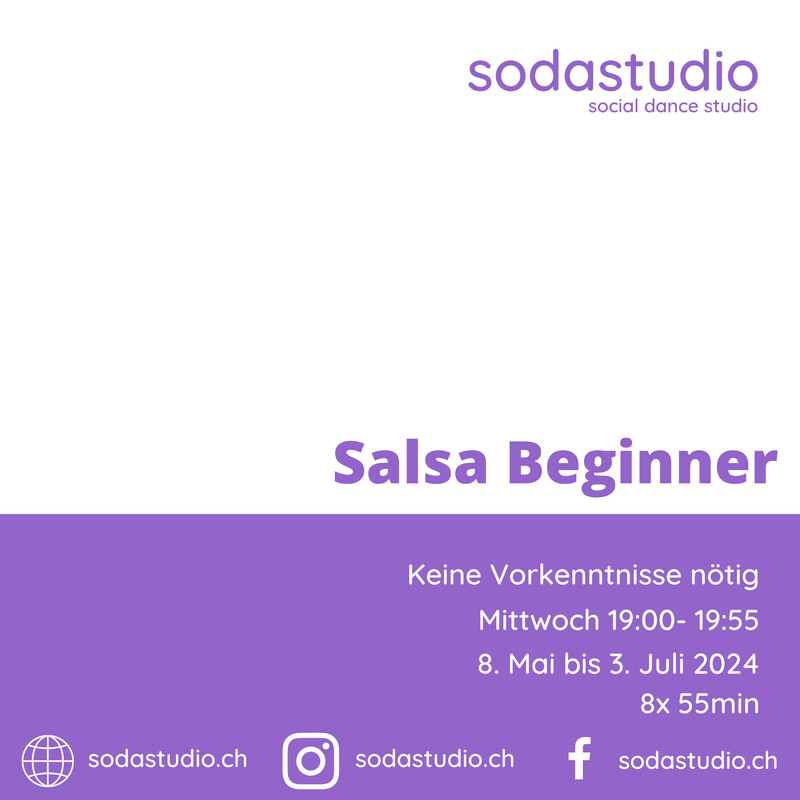 Starte deine Salsa Reise mit uns! Unsere Salsa Beginner 1 Class richtet sich an Teilnehmer ohne, oder mit ersten mit kleinen Vorkenntnissen, an Wiedereinsteiger und an alle, die Interesse haben ihre Basis solide zu festigen und auszubauen. Wir trainieren die wichtigsten Grundlagen des Salsa, damit du in wenigen Woche auf der Tanzfläche Spass haben kannst. Wir erklären dir den Aufbau von Salsa Musik und du lernst anhand von coolen Übungen die Rhythmik zu verstehen und mit deinem Körper umzusetzen. Erste, einfache Figuren kannst du nach diesem Kurs fliessend tanzen. Lass dich von uns auf eine Reise voller Spass, Musikalität und Lebensfreude mitnehmen! Was du in diesem Kurs lernst: Du lernst den Grundschritt und verschiedene Variationen des Grundschritts. Wir schulen dein Taktgefühl und vermitteln dir erste Konzepte im Führen und Folgen. Du lernst die wichtigsten Positionen und einfache Figuren. Du übst mit und ohne Partner. Kursdaten und Preis: MI 8. Mai bis MI 3. Juli 2024 | 19:00 - 19:55 (MI 19. Juni findet kein Kurs statt) 8x 55 Min. | 240.-/Person Deine Tanzlehrer: Wir, Francesco und Mirjam von sodastudio, freuen uns darauf, dich auf deinem tänzerischen Weg zu begleiten und mit dir viele unterhaltsame und lehrreiche Stunden zu verbringen! Kontakt bei Fragen: Du kannst uns jederzeit über unser Kontaktformular auf sodastudio.ch oder per Mail info@sodastudio.ch kontakieren. https://www.silkk.ch/kurse/Salsa-Beginner24-04-2024-19009-24-61