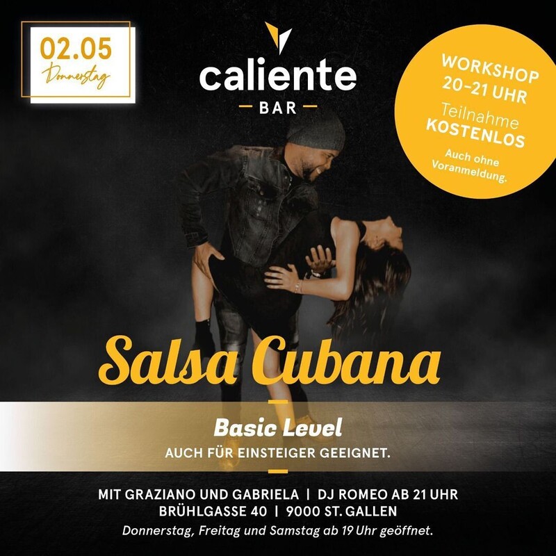 Caliente Bar Ella B. jeudi 02 mai 2024 20h00 cours Salsa-Workshop basic level Avez-vous été à cet événement? Ajouter vos photos! Salsa cubana mit Graziano & Ella Prix d'entrée: CHF 0.00 Share on Facebook Événements