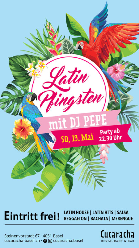 LATIN PFINGSTEN mit DJ PEPE Sonntag, 19. Mai 2024 feiern wir im Cucaracha, Basel! Am Montag ist frei! Wir fangen um 22:00 Uhr an! Sei dabei! Musik: Salsa, Merengue, Bachata, Reggaeton, Latinhits, u.v.m. EINTRITT FREI! https://www.cucaracha-basel.ch/events-in-basel#c100703