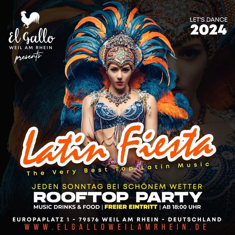 LATÍN FIESTA | ROOFTOP PARTY | 25 °C | WS Ab 18:00 Uhr | Party Ab 19:00Uhr | Eintritt Frei jeden Sonntag bei schönem Wetter 🌞 Direkt an der Dreiländergalerie in Weil am Rhein - Bachata Workshop By : Ilhan & Kira ( 10 CHF/€) | Ab 18:00 Uhr - • Guest DJs • Salsa, Bachata, Latin Mix & Open Format • Drinks, Food & Party - El Gallo Resto Bar Lounge Europaplatz 1 79576 Weil am Rhein Deutschland