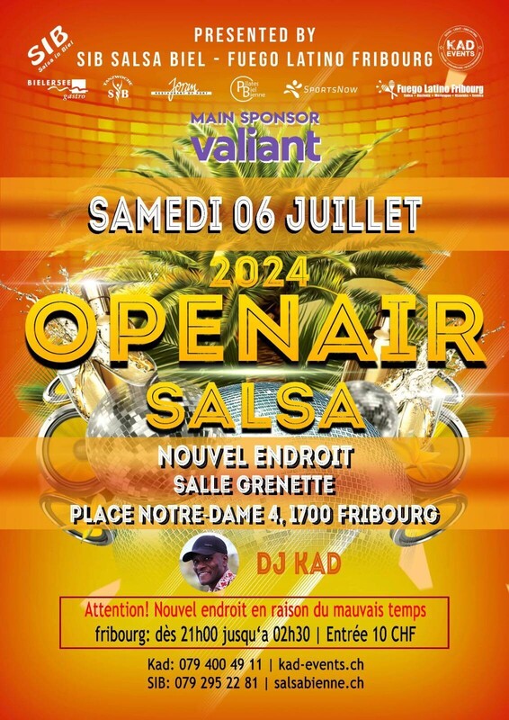 ❗️ATTENTION CHANGEMENT DE LIEU❗️ 💢EN RAISON DU MAUVAIS TEMPS, NOUS AVONS UN PLAN B!💢 ✅ LIEU: SALLE GRENETTE ✅ HEURE : 21H00 A 02H30 ✅ ENTREE : 10.- ✅ AUX PLATINES :::: DJ Kad Djkad Pereira ::: 💃ON VOUS ATTEND NOMBREUX💃 ADRESSE : SALLE GRANETTE, PLACE NOTRE-DAME 4, 1700 FRIBOURG CONTACT: KAD : 079 400 49 11 - DJKAD@BLUEWIN.CH - KAD-EVENTS.CH >>>>> LES AUTRES DATES <<<<< - 11 & 20 JUILLET : PORT DE BIEL - 03 AOÛT : PORT DE BIEL - 31 AOÛT : PLACE GEORGES-PYTHON FRIBOURG www.kad-events.ch
