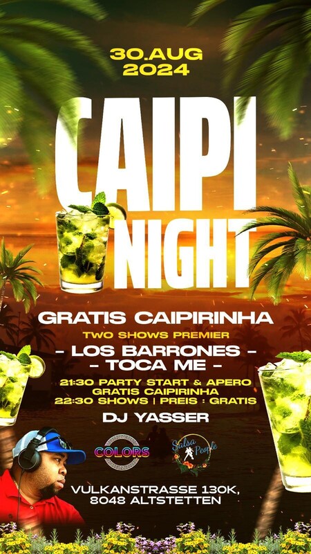 FREITAG, 30.08.2024 SALSA & BACHATA EVENT *** SALSA | BACHATA *** *** 2 SHOWS PREMIER *** *** DJ YASSER*** PARTY START - 21.30Uhr PREIS: GRATIS Lass dich entführen und geniesse die atemberaubende Magie der neuen Event Location im Stadion der SWISS LIFE ARENA In Zürich! Es erwartet dich ein Spektakel mit bezaubernden Shows im THE COLORS . === THE COLORS === Vulkanstrasse 130 | 8048 Zürich - Swiss life Arena https://salsapeople.ch/workshop/