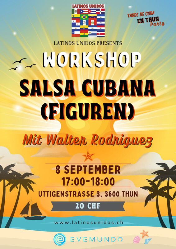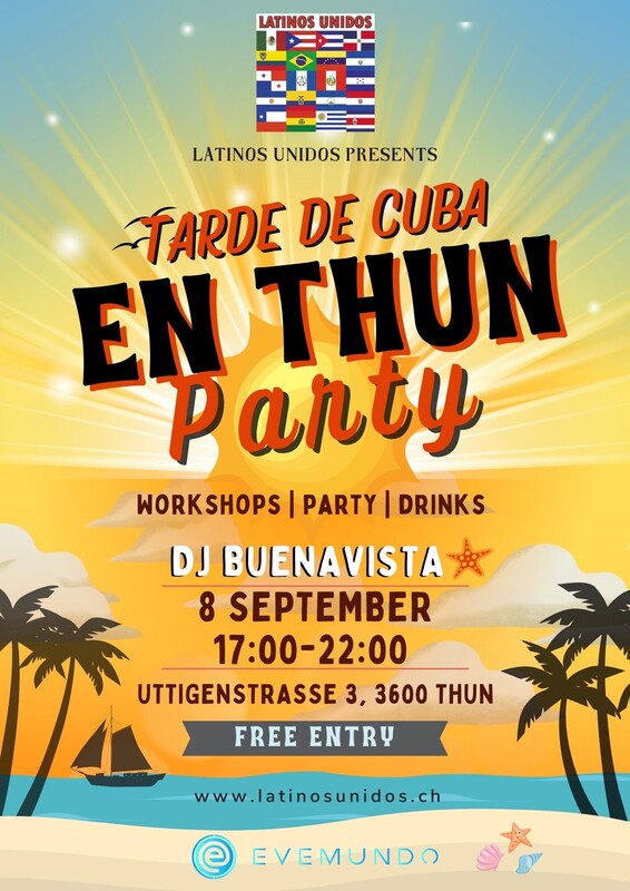 KIO Sabrina De Simone 8 de septiembre de 2024 17:00 fiesta curso TARDE DE CUBA EN THUN Estuviste en este evento? Agrega tus fotos! 17:00-18:00 workshop 18:00-22:00 party mit dj BUENAVISTA EINTRITT GRATIS Precio de entrada: CHF 0.00 Share on Facebook Eventos
