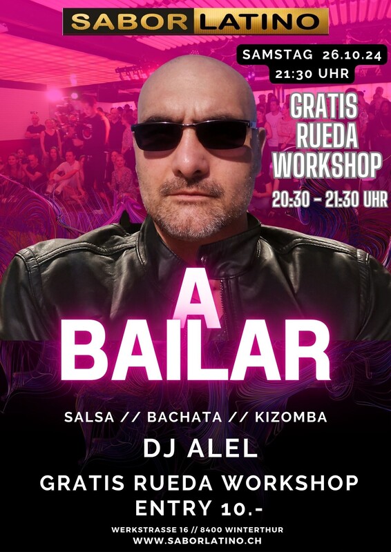 A Bailar, karibische Lebensfreude präsentiert durch die beste Musik von unseren DJ`s. Salsa, Bachata, Kizomba und auch Merengue wird er auflegen. Floor 1: DJ: Alel Salsa / Bachata / Kizomba 20:30 - 21:30 Uhr Gratis Rueda Workshop www.saborlatino.ch