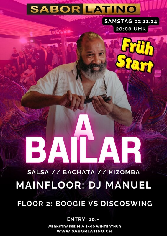 Rhyt-Mix, karibische Lebensfreude präsentiert durch die beste Musik von unseren DJ`s. Salsa, Bachata, Kizomba und auch Merengue wird er auflegen. Floor 1: DJ Manuel Salsa / Bachata / Kizomba Floor 2: DJ Jochen Boogie vs. Discoswing www.saborlatino.ch