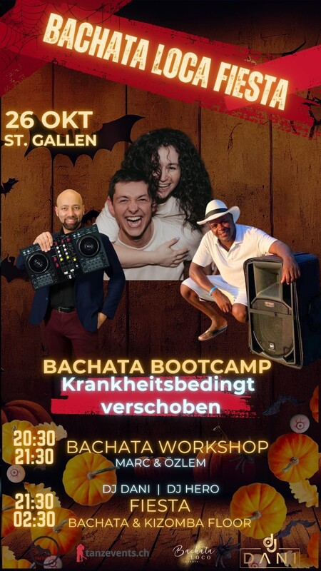 ACHTUNG: kein Bootcamp 🌟🌟🌟 Bachata-Party mit Kizomba Floor in Pivot, St. Gallen! 🌟🌟🌟 Bereitet euch vor auf eine unvergessliche Tanznacht bei der Bachata Loco Fiesta am Samstag, dem 26 Oktober, im Pivot, St. Gallen, vor! Dieser Event ist ein Muss für alle Bachata und Kizomba-Begeisterten und Tänzer, die sich in die lebhaften Rhythmen des Tanzes vertiefen möchten. 🔥🔥🔥 Exklusive Bachata Workshops & Top-DJs! 🔥🔥🔥 Nehmt an unserem Bachata-Workshop Open Level teil um 20:30 mit Marc & Özlem Wichtig: Das Mitbringen von eines Partners zu den Workshops ist nicht notwendig 🔥🔥🔥NEW KIZOMBA🔥🔥🔥 Wir präsentieren den Kizomba-Raum, da Pivot nun einen zusätzlichen Raum hat, den wir gerne nutzen möchten. Mit unsere DJs versprechen wir eine unvergessliche Nacht voller aktueller und grossartiger Kizomba-Hits! DJ Hero versorgt wieder super Kizomba hits! 🔥🔥🔥Dress Code🔥🔥🔥 Neue ist die Kleiderthema für diesen Abend sind Halloweenfarben. Wir laden Sie ein, sich in den Halloweenfarben zu kleiden. Lassen Sie sich von den Farben draußen inspirieren und überraschen Sie uns. Wir hoffen, alle in ihrer besten Form zu sehen (aber die Dress Code ist natürlich nicht verpflichtet). Wir bieten: 2 DJs: DJ DANI, DJ HERO Bar mit trinken - Bezahlen mitt Twint oder Bargeld möglich Main Floor Bachata - Zimmer mit guter Klimaanlage Second Floor Kizomba - Zimmer mit guter Klimaanlage 📢 Der Vorverkauf hat begonnen, sichert euch jetzt die Tickets mit dem Rabatt! Veranstaltungshighlights: 20:30: Open Level Bachata Workshop mit Marc & Özlem 20:30: Anfänger Kizomba Workshop für alle Niveaus von Nandes 21:30 - 02:00: Bachata Loco Fiesta mit DJ Dani und DJ Hero Tickets im Vorverkauf: 20CHF (25 CHF an der Abendkasse): Workshops plus Party 10CHF (15 CHF an der Abendkasse) : Eintritt zur Bachata Loco Fiesta Sichert euch euren Platz im Herzen der Bachata und Kizomba Szene von St. Gallen. Kommt zu uns für eine Nacht, in der die Rhythmen der Musik uns vereinen. Sichert euch noch heute die Tickets und seit Teil dieser lebendigen Feier! eventfrog Tickets: https://eventfrog.ch/de/p/party/latin-brasil/bachata-loco-bootcamp-loca-fiesta-7244436012276879104.html https://ce-events.ch