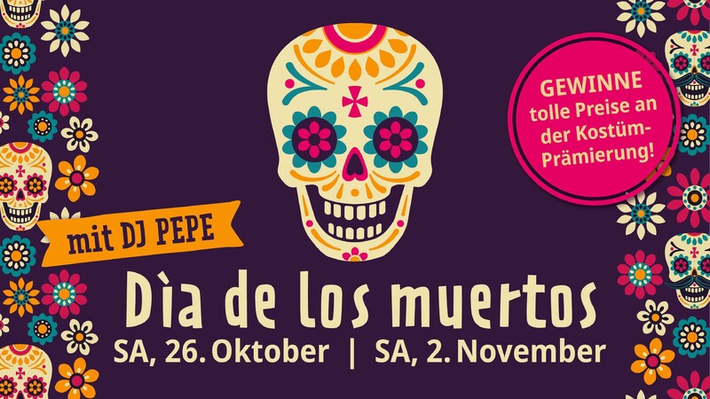 Dìa de los muertos im Cucaracha Tanze mit uns durch die dunkelste Nacht des Jahres! In unserem dekorierten Restaurant erwartet dich ein schaurig gruseliger Abend, welcher dir das Blut garantiert in den Adern gefrieren lässt. ab 22.30 Uhr: Party mit DJ Pepe um 01.00 Uhr: Kostümprämierung An der Kostümprämierung verleihen wir als Hauptpreis einen Gutschein im Wert von CHF 150.–, für den zweiten Platz einen Gutschein im Wert von CHF 100.– und für den dritten Platz einen Gutschein im Wert von CHF 50.–! Wir freuen uns auf ein fürchterlich düsteren Abend mit dir! EINTRITT FREI! https://www.cucaracha-basel.ch/