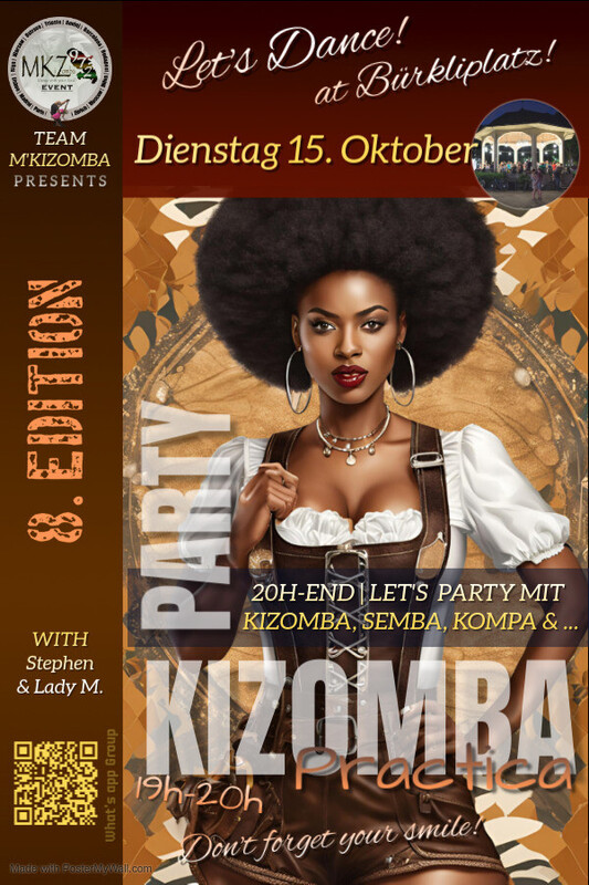 ❤‍🔥 Dear dancers ❤‍🔥 As you wish... Tuesday, 15th October 2024 We will have the 8th Edition of 100% Kizomba for the social dance & more... 🫂 New Concept 🫂 Practica – Music will play all the time; you can just dance or ask us questions on how to improve your dancing and we will help. 💃🏽 Program🕺🏽 19:00-20:00 "Practica" — Combines the idea of practice with a social dance: improve & enjoy. 20:00-End "Social Dance" ❤️‍🔥 This Tuesday the Practica will be hosted by Stephen & Lady M. 💃🏻🕺🏾 🫶🏻 Donations Corner 🫶🏽 More 🫱🏼‍🫲🏾💰 = More ❤‍🔥🔊 📍 Bürkliplatz: https://maps.app.goo.gl/gtaBzstacCMzN4bb6 🚽 Public toilet nearby: https://maps.app.goo.gl/P41Mxj7DyJrcecGV6 👠👞🧦 The floor is perfect for all feet, all shoes, as you wish. 🧃🍺 Bring your own snacks and drinks! 🥪🥨 🚮🫵 And if you like this place: don't forget to clean before leaving 🙏🏾 😃Looking forward to seeing you! 🤗 ❤‍🔥 Team M'KiZomba 💃🏻🕺🏾💃🏻 Link What's App group: https://chat.whatsapp.com/HsxkUKNIes12w7zsCfPyzv 🫶🏻🫶🏽🫶🏿 Please share with your friends ❤‍🔥💃🏻🕺🏾
