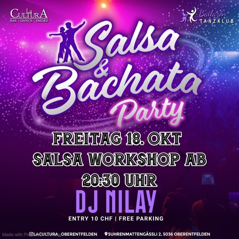 🎉 **Salsa & Bachata Party im Club La Cultura!** 🎉 Tauche ein in eine unvergessliche Nacht voller Leidenschaft und Rhythmus! Am [Datum einfügen] laden wir dich herzlich ein zur heißesten Salsa & Bachata Party in Unterentfelden. **Programm:** 🕤 **20:30 Uhr** – Workshop mit den fantastischen Sven & Lea. Egal ob Anfänger oder Fortgeschrittener, hier lernst du die besten Moves! 🕥 **21:30 Uhr** – Party open End! Tanze die Nacht durch, bis die Füße glühen, zu den besten Latin Beats. **Location:** Club La Cultura, Unterentfelden Verpasse nicht diese einmalige Gelegenheit, in einer tollen Atmosphäre zu feiern und neue Leute kennenzulernen. Wir freuen uns auf dich! 💃🕺 https://la-cultura.ch/