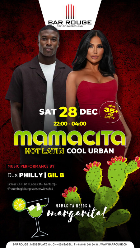 Zeige uns deine Dancemoves und schwinge die Hüften zu heissem Latin Sound und coolen Urban Tracks. Wir und unsere Gäste sind schärfer als alles andere! Music: HOT LATIN & COOL URBAN https://www.barrouge.ch/de/events/mamacita28122024/