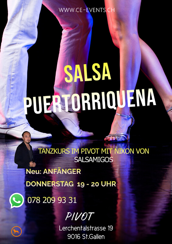 Salsa Kurs jeden Donnerstag mit Nixon von Salsamigos Anfänger von 19 – 20 Uhr Kurs ist 4x 1 Std. Kurskosten: 100 CHF Der Kurs findet nur statt bei genügend Anmeldungen!!! Nur mit Anmeldung unter info@ce-events.ch oder Phone 078 209 93 31 Wir freuen uns auf schöne Tanzstunden mit euch 🙂 https://ce-events.ch