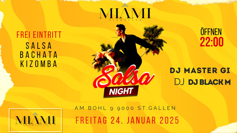 Salsa Bachata Best of Salsa Bachata kizomba from 22:00 until 01:30 Kommt vorbei und tanzt. 💃🏽🕺🏻#Miamiclubsg #Salsa #Bachata # Kizomba #Merengue MIAMI CLUB St.Gallen Bohl 9, 9000 Saint Gallen, Switzerland Mail: info@miamiclub
